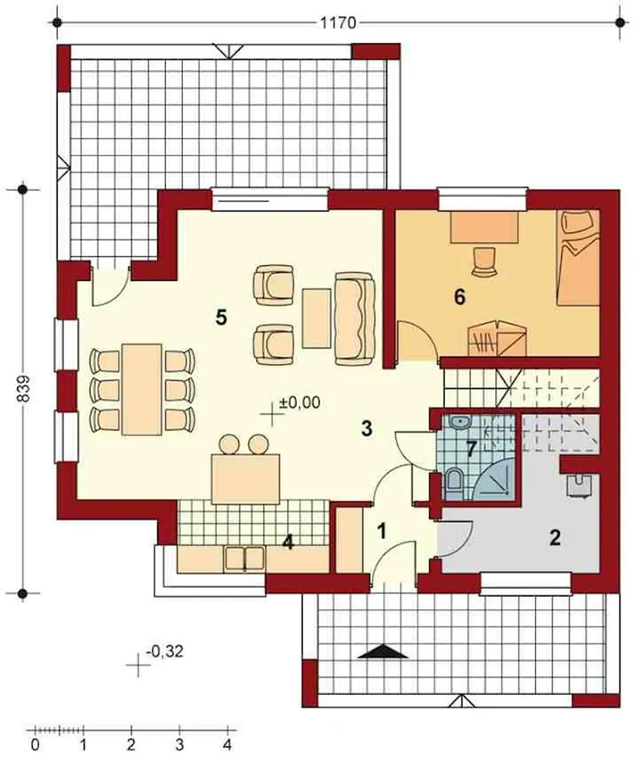 3. Rzut parteru i pozostałych kondygnacji (w zależności od projektu) – dokładnie zwymiarowane, z podanymi powierzchniami poszczególnych pomieszczeń, rozmieszczeniem ścian, detalami rozwiązań, wyposażeniem, technologią, itp.