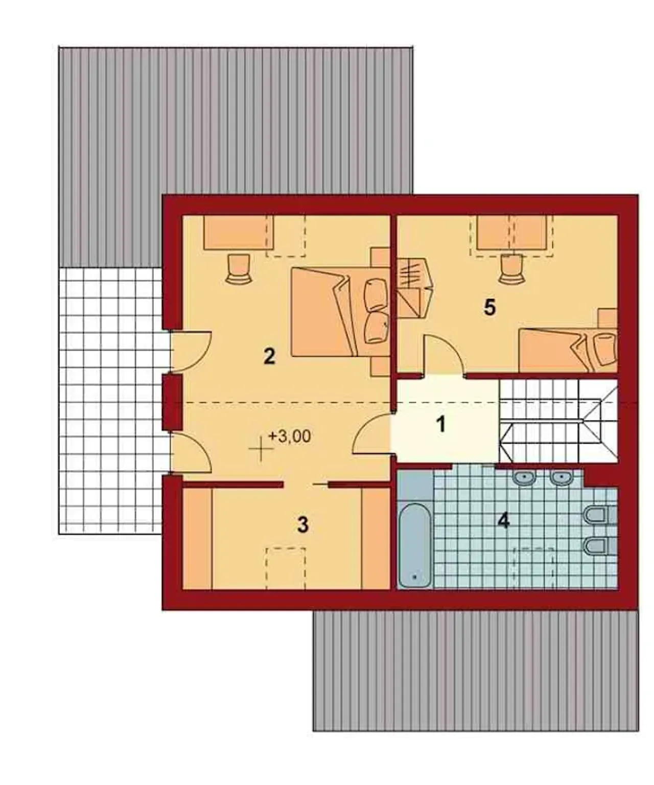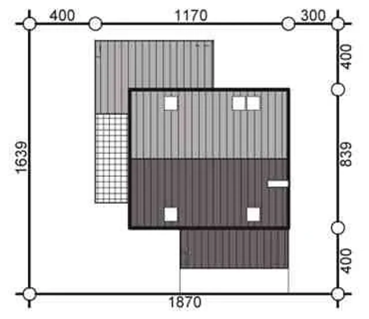 4. Rzut dachu – dokładnie zwymiarowany pokazujący kształt dachu i jego kąt nachylenia ,rozmieszczenie okien połaciowych, lukarn oraz rur spustowych.