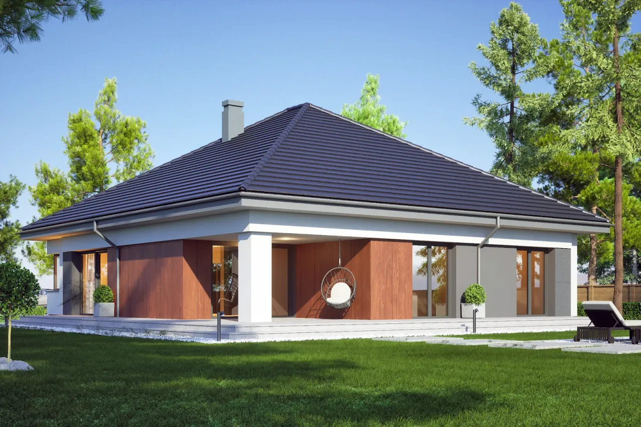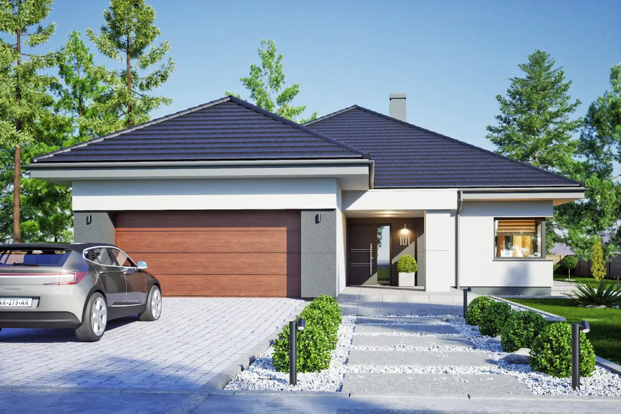 Projekt Laura II z garażem 2-st. A to propozycja, która przyciąga uwagę swoją funkcjonalnością i przemyślaną organizacją przestrzeni. Jasna elewacja oraz spadzisty dach dodają nowoczesnego charakteru, a przy tym wpisują się w klasyczną estetykę. Układ pomieszczeń jest logicznie zaplanowany, co sprzyja wygodnemu użytkowaniu przez rodzinę. Obszerna przestrzeń dzienna z otwartą kuchnią stanowi serce domu, sprzyjającą wspólnym chwilom. Niewątpliwym atutem jest również przestronny garaż, który zdecydowanie sprawdzi się w codziennym użytkowaniu. Ten projekt stanowi doskonałe rozwiązanie dla osób poszukujących praktycznego i estetycznego miejsca do życia.