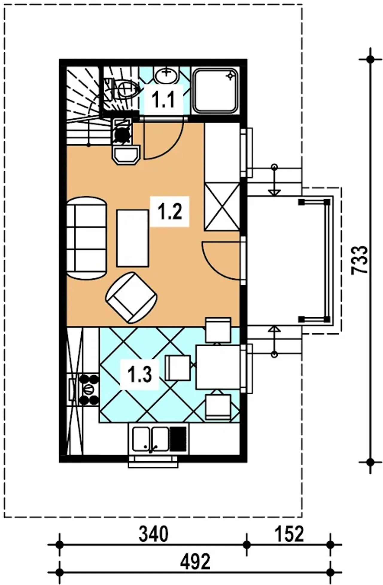 Wypełnij formularz i otrzymaj rysunki w pdf z dokładnymi wymiarami budynku i pomieszczeń (długość, szerokość, wysokość) dla projektu LEG-1 szkielet drewniany