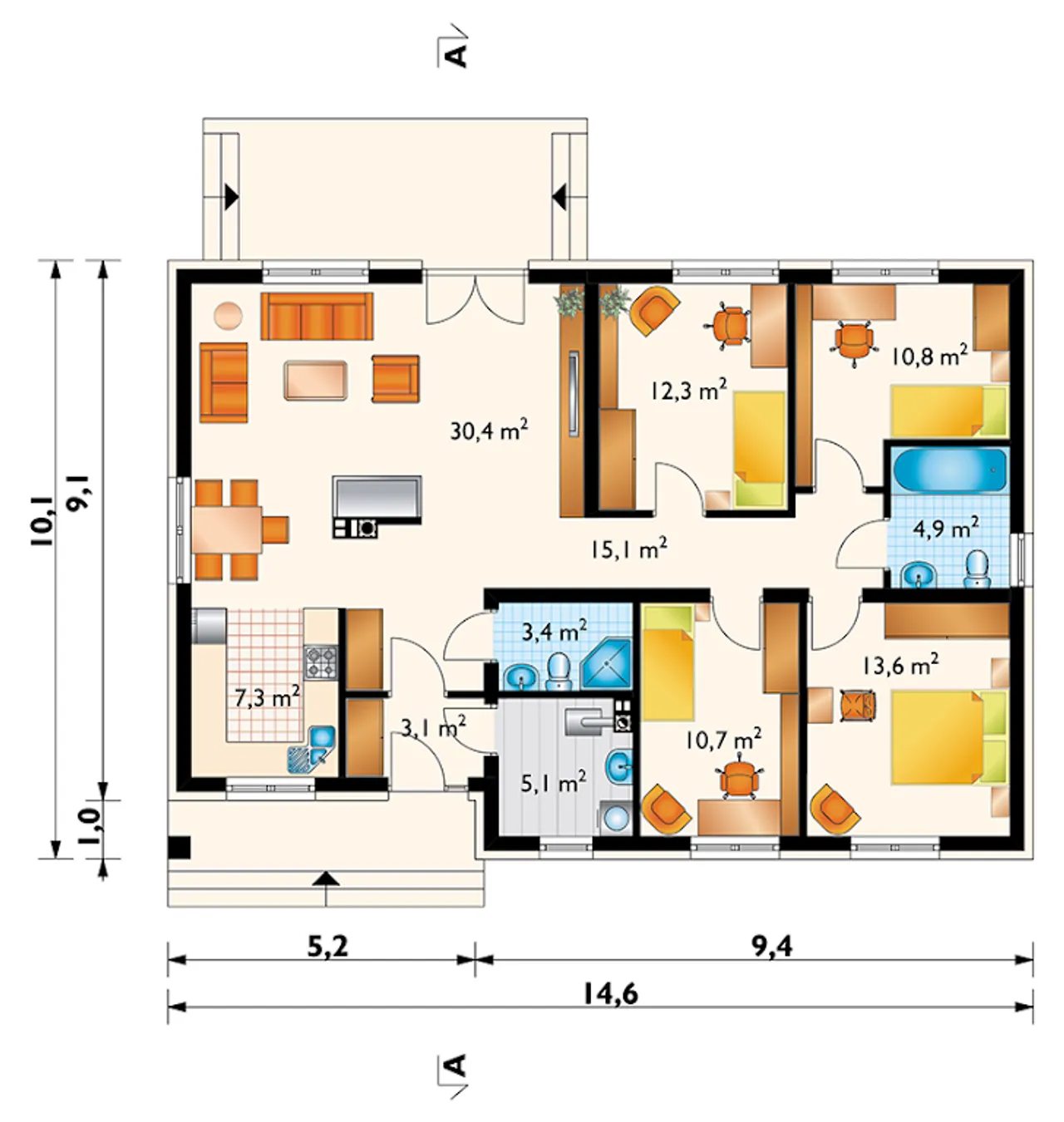 - rzuty wszystkich kondygnacji- pokazuje rozmieszczenie poszczególnych pomieszczeń i ich wymiary, powierzchnie, rozmieszczenie ścian, rozmieszczenie otworów drzwiowych, okiennych, urządzeń kuchennych i sanitarnych