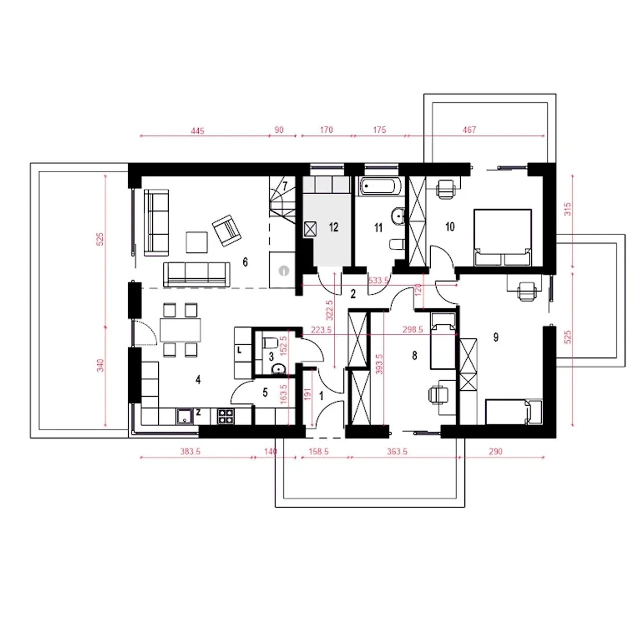 parterowy Projekt Lena B imponuje już na pierwszy rzut oka. Elegancja elewacji jest urzekająca, a każdy element został starannie zaplanowany. Wnętrza zachwycają przestronnością, a nowoczesny design natychmiast przyciąga uwagę. Duże okna zapewniają obfitość światła, a układ pomieszczeń jest niezwykle intuicyjny. Projekt domu Lena B inspiruje do życia, a ogród w sposób harmonijny współgra z całością architektoniczną. Salon stanowi centralny punkt domu. Rozważam zakup projektu i rozpoczęcie budowy tej nieruchomości.