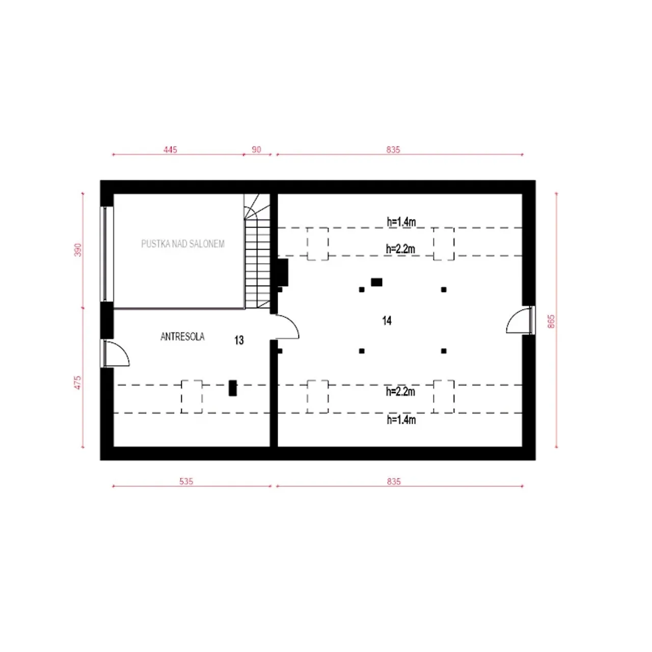 parterowy Wypełnij formularz i otrzymaj rysunki w pdf z dokładnymi wymiarami budynku i pomieszczeń (długość, szerokość, wysokość) dla projektu Lena bez garażu B