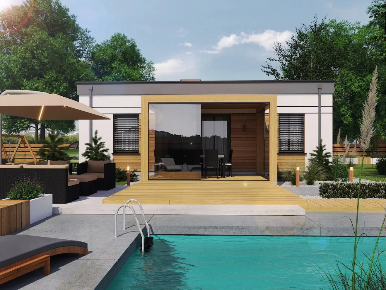 Projekt domu Lens 5 C zachwyca swoim nowoczesnym designem. Elewacja przyciąga uwagę prostotą i elegancją. Wnętrze planu jest przemyślane i funkcjonalne. Rozmieszczenie pomieszczeń wydaje się idealnie zbalansowane. Duże okna wpuszczają mnóstwo światła. Taras to prawdziwy atut tego projektu. Estetyka budynku harmonizuje z otoczeniem. Całość jest spójna z nowoczesnymi trendami architektonicznymi. Zastanawiam się nad zakupem projektu i budową tego domu.
