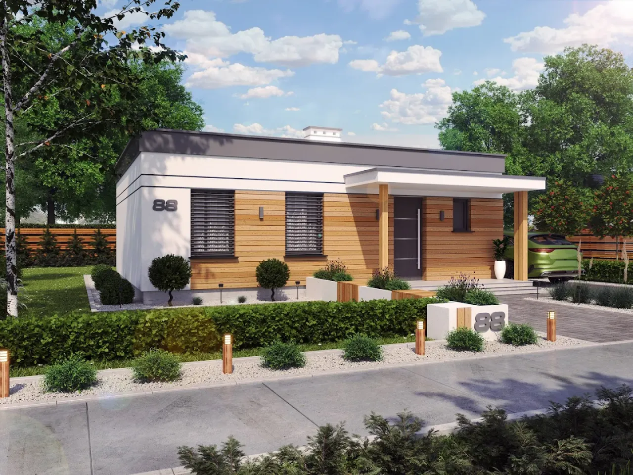 Projekt Lens 5 dom letniskowy zachwyca swoim wyglądem. Architektura domu jest uderzająco nowoczesna. Przemyślany układ wnętrz zadowala każdego. Duże okna wpuszczają dużo światła do wnętrza. Prosta bryła budynku wyróżnia się elegancją. Wykończenie w drewnie dodaje mu ciepła. Kompaktowe rozmiary idealnie pasują do niewielkich działek. Przyciąga uwagę miłośników natury. Efektowna elewacja czyni go wyjątkowym na tle innych projektów. Cenię nowoczesne rozwiązania zastosowane w projekcie. Rozważam zakup projektu i budowę tego domu.