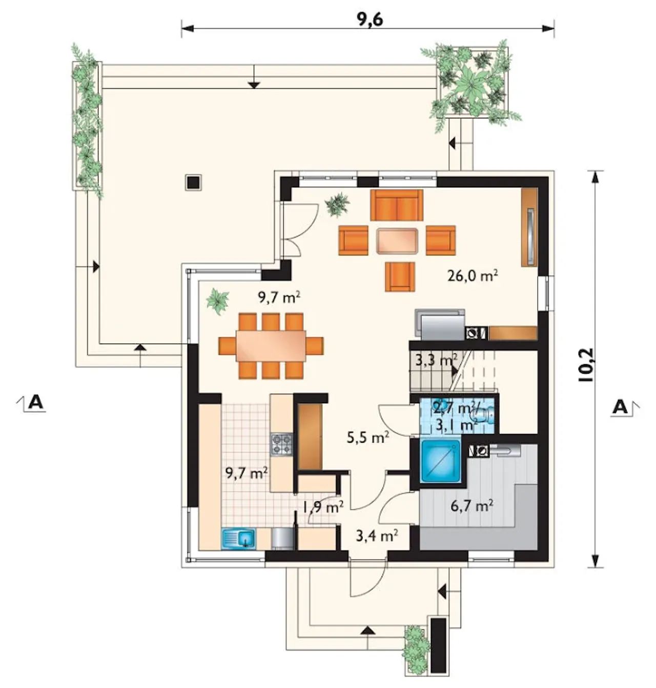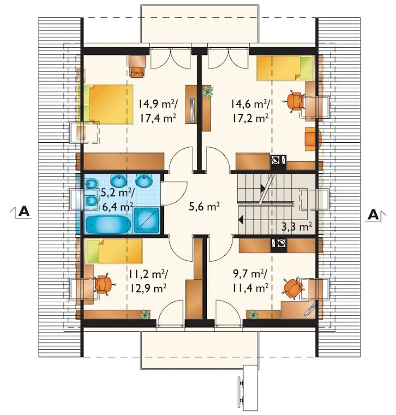 - elewacje - pokazują dokładny wygląd domu od frontu, z tyłu i z boków