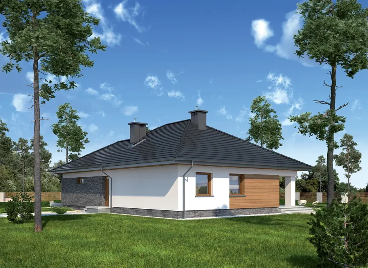 Kupując projekt w technologii murowanej powinieneś budować dom murowany. Zupełna zmiana technologii na szkieletową wymaga przeprojektowania całego budynku ( zmieniają się obciążenia, fundamenty, konstrukcja dachu). Wydamy zgodę na takie przeprojektowanie jednak wiążę się to z dużymi kosztami. Istnieją firmy wykonawcze, które podejmują się zmiany technologii budowy bezpłatnie przy skorzystaniu z ich usług wykonawczych. Zdarza się, że pracownia architektoniczna przygotowuje warianty konkretnego projektu przewidując także inne technologie. Prosimy o sprawdzenie czy istnieje poszukiwana wersja projektu, w zakładce - warianty projektu.