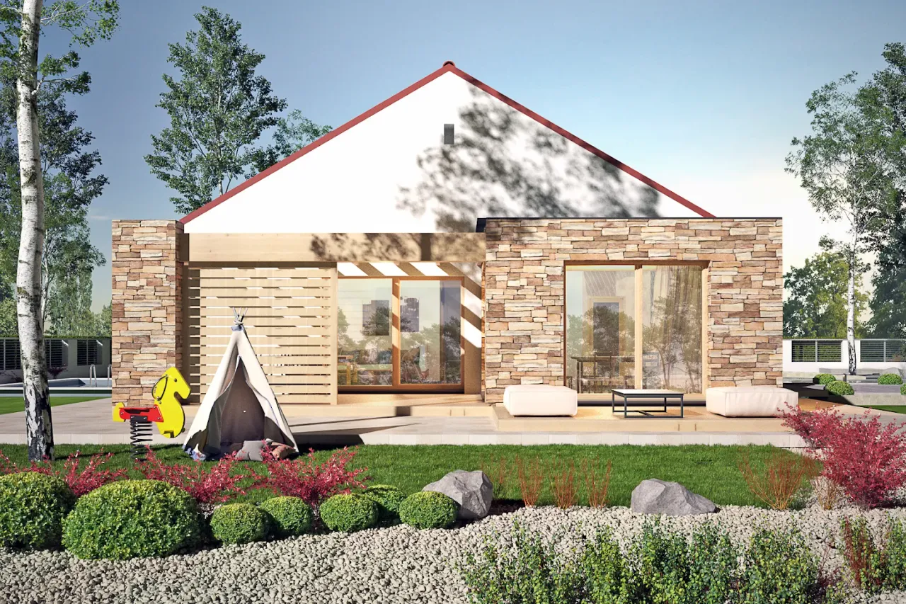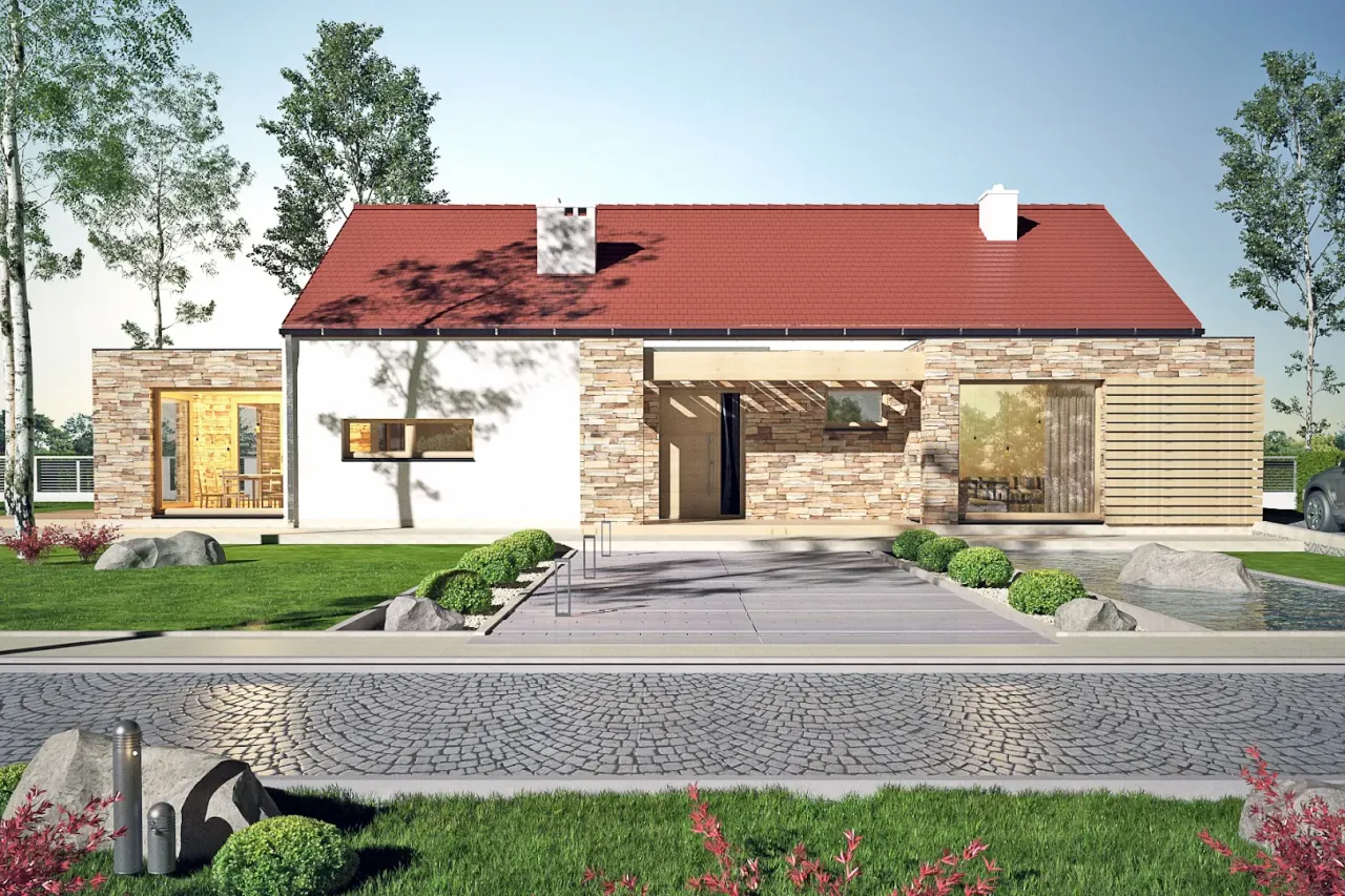 Kupując projekt w technologii murowanej powinieneś budować dom murowany. Zupełna zmiana technologii na szkieletową wymaga przeprojektowania całego budynku ( zmieniają się obciążenia, fundamenty, konstrukcja dachu). Wydamy zgodę na takie przeprojektowanie jednak wiążę się to z dużymi kosztami. Istnieją firmy wykonawcze, które podejmują się zmiany technologii budowy bezpłatnie przy skorzystaniu z ich usług wykonawczych. Zdarza się, że pracownia architektoniczna przygotowuje warianty konkretnego projektu przewidując także inne technologie. Prosimy o sprawdzenie czy istnieje poszukiwana wersja projektu, w zakładce - warianty projektu.