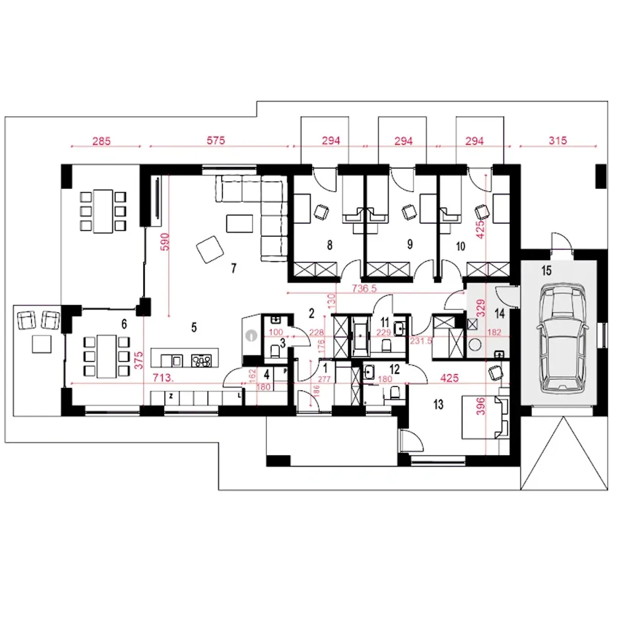 Wypełnij formularz i otrzymaj rysunki w pdf z dokładnymi wymiarami budynku i pomieszczeń (długość, szerokość, wysokość) dla projektu Ślęza bez garażu B