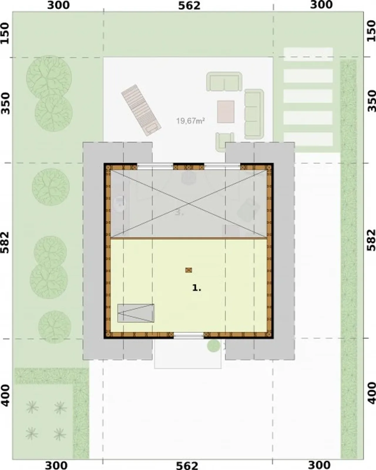 Wypełnij formularz i otrzymaj rysunki w pdf z dokładnymi wymiarami budynku i pomieszczeń (długość, szerokość, wysokość) dla projektu Lido 2 A Szkielet Drewniany Na Zgłoszenie Do 35 M2