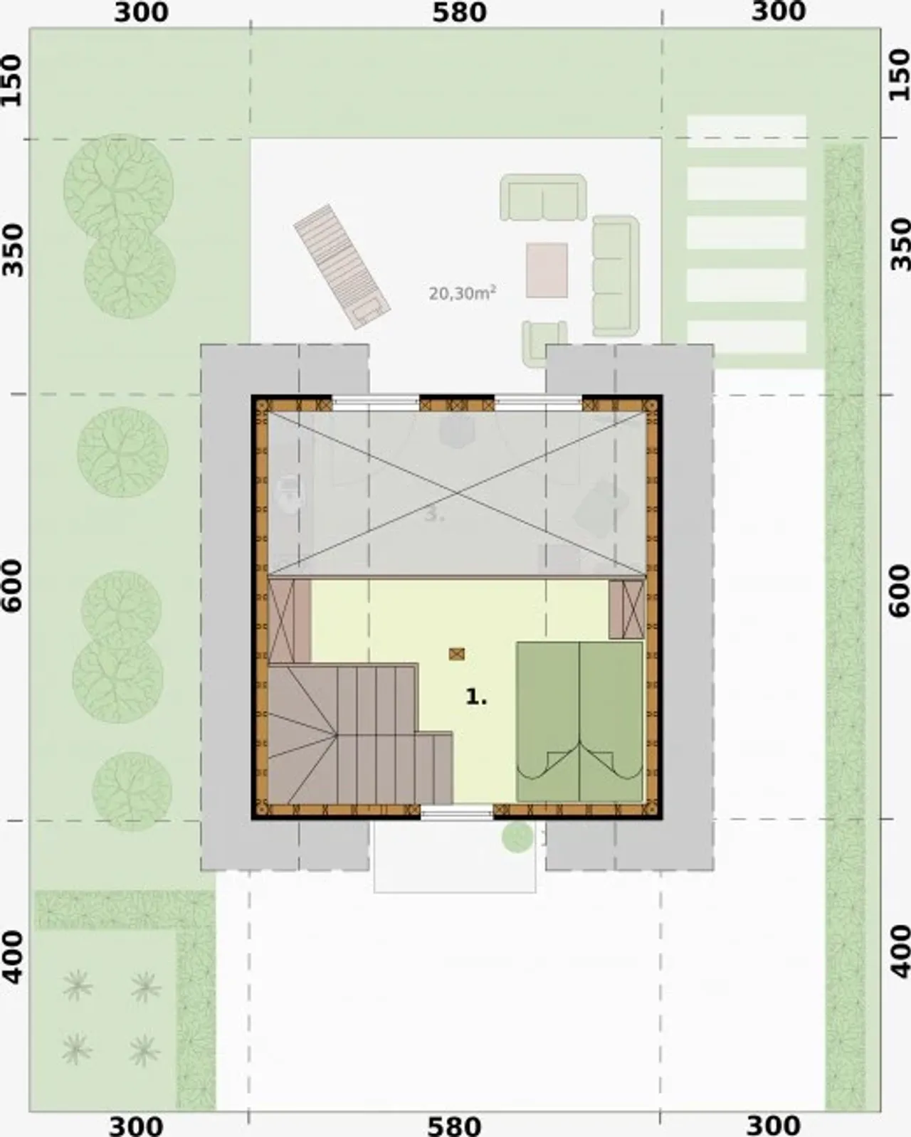 Wypełnij formularz i otrzymaj rysunki w pdf z dokładnymi wymiarami budynku i pomieszczeń (długość, szerokość, wysokość) dla projektu Lido 3 C Szkielet Drewniany Dom Mieszkalny, Z Antresolą