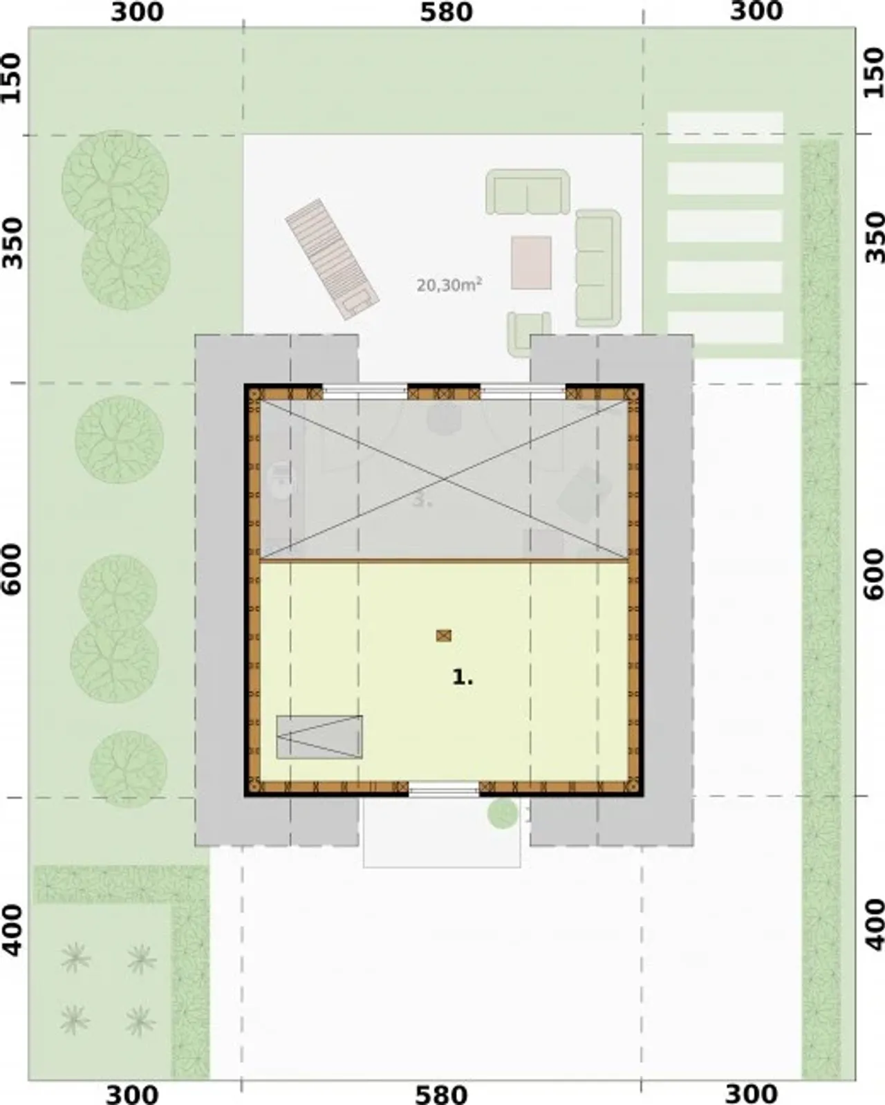 Wypełnij formularz i otrzymaj rysunki w pdf z dokładnymi wymiarami budynku i pomieszczeń (długość, szerokość, wysokość) dla projektu Lido A Oc Szkielet Drewniany Letniskowy, Ocieplony Na Zgłoszenie Do 35m2