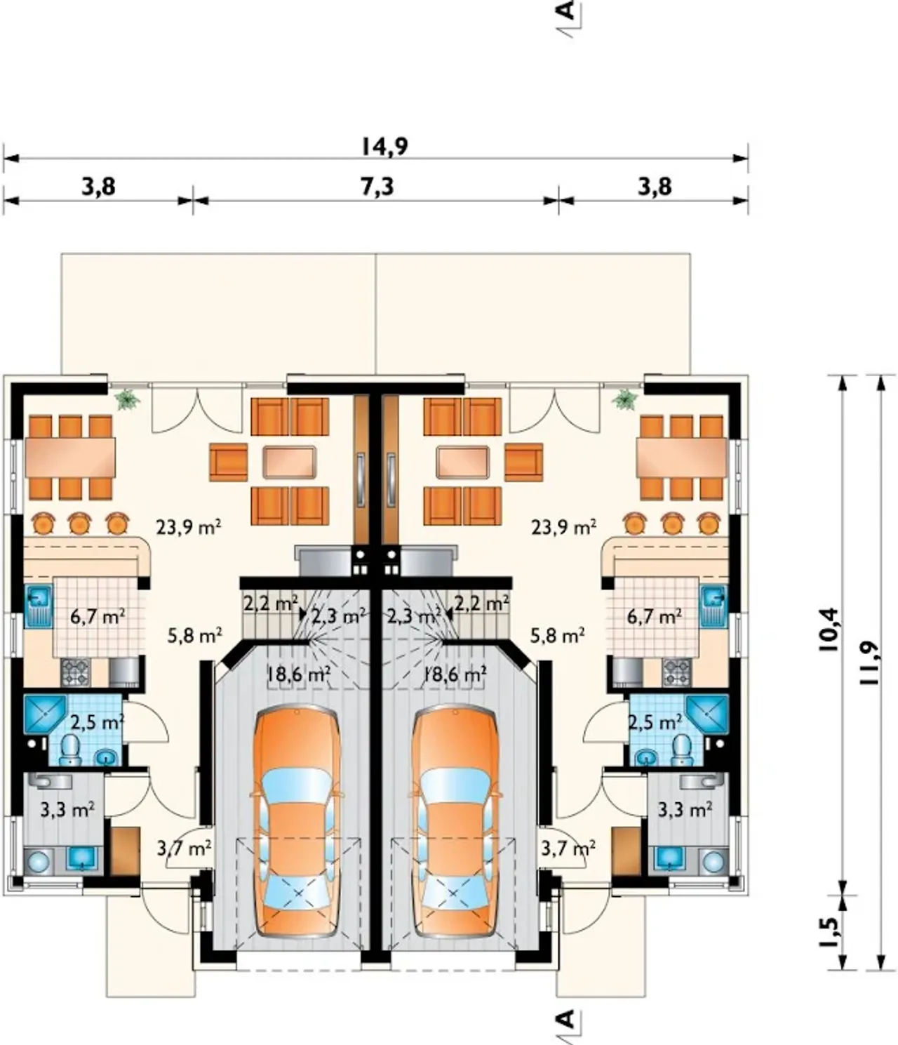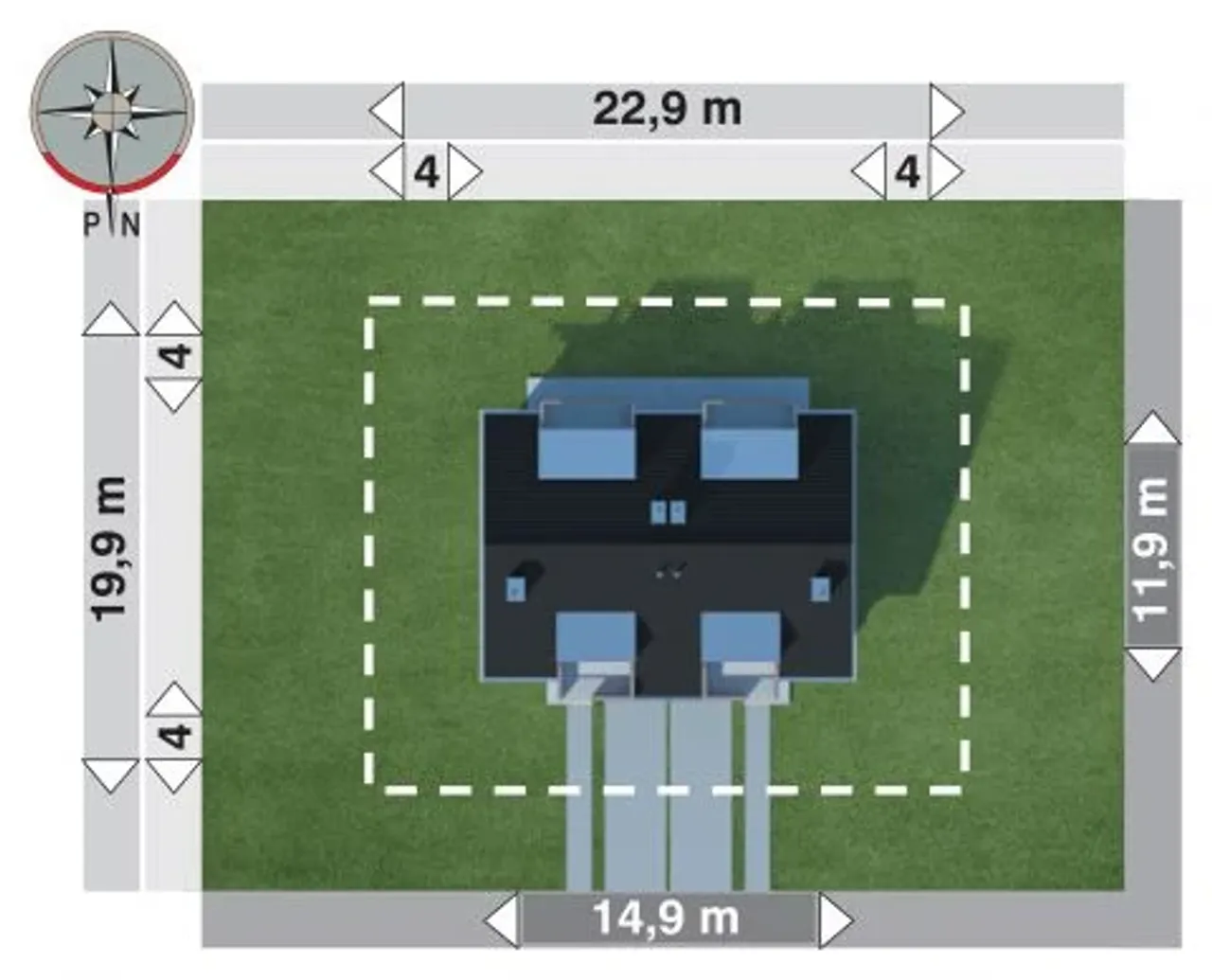 Szerokość budynku 14.9 m |