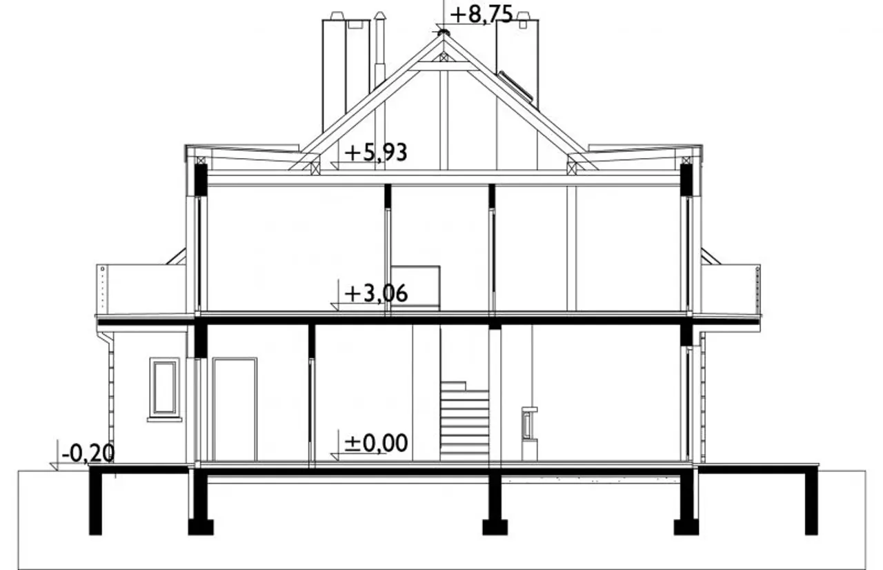 - przekroje - pokazują wszystkie elementy budynku po przecięciu go wzdłuż lub w poprzek od dachu do fundamentów tj. warstwy podłogi, stropów i dachu