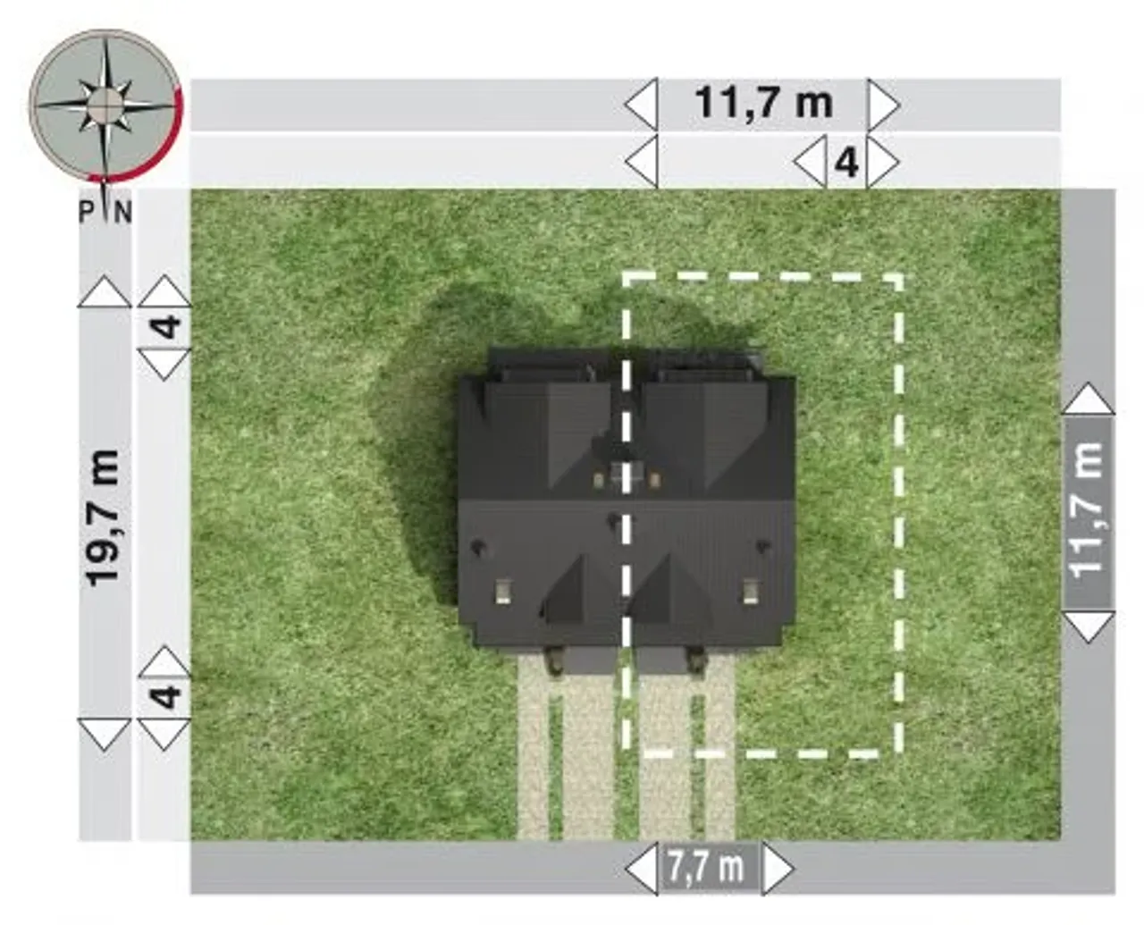 Wypełnij formularz i otrzymaj rysunki w pdf z dokładnymi wymiarami budynku i pomieszczeń (długość, szerokość, wysokość) dla projektu Lila Prima Duo