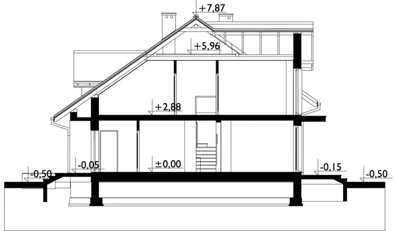 - przekroje - pokazują wszystkie elementy budynku po przecięciu go wzdłuż lub w poprzek od dachu do fundamentów tj. warstwy podłogi, stropów i dachu