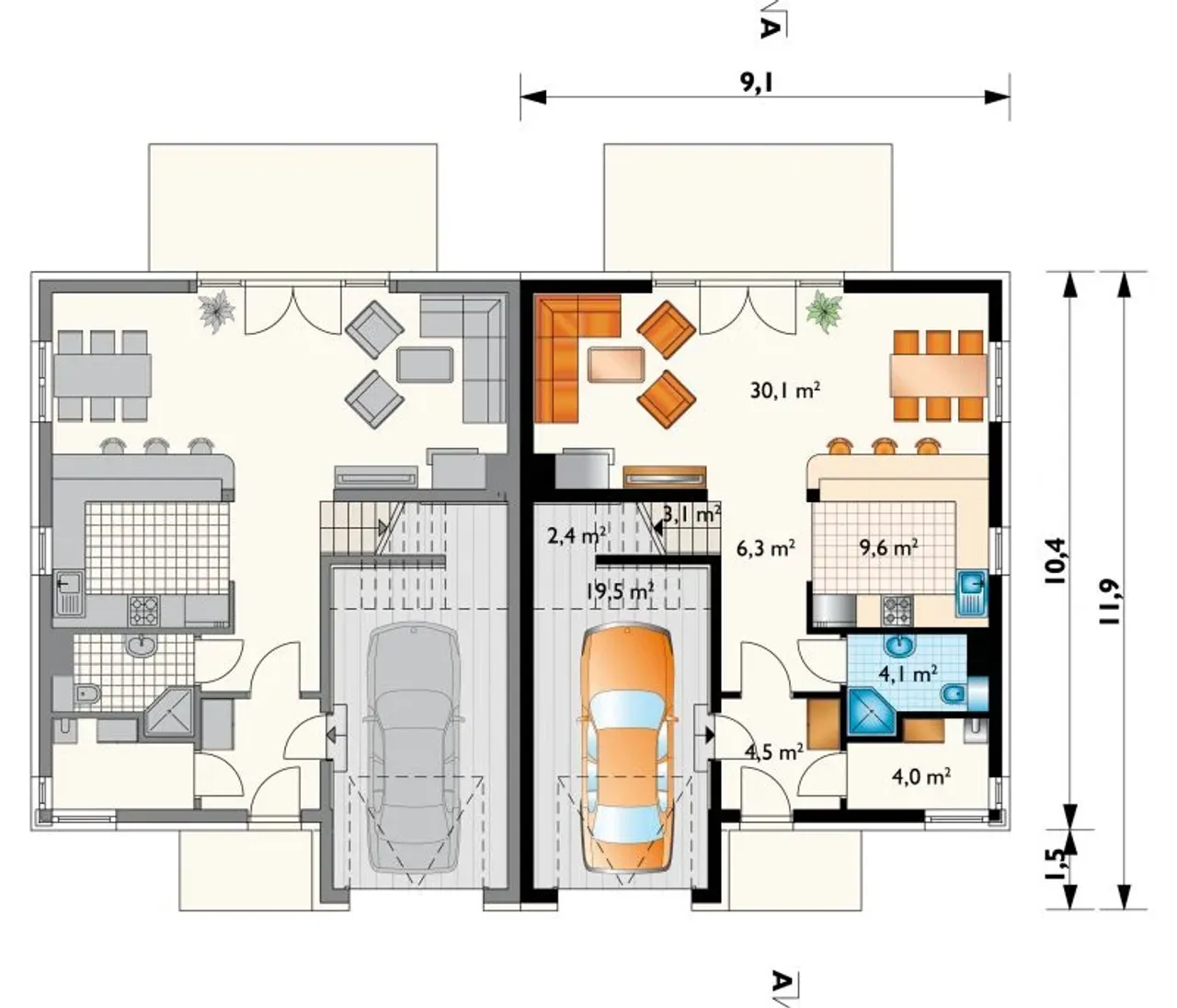 1. Garaż | 19,50 m² |