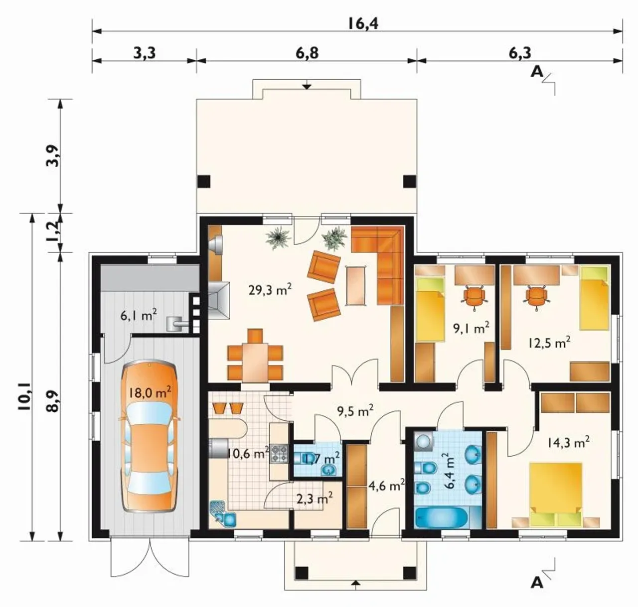 - elewacje - pokazują dokładny wygląd domu od frontu, z tyłu i z boków