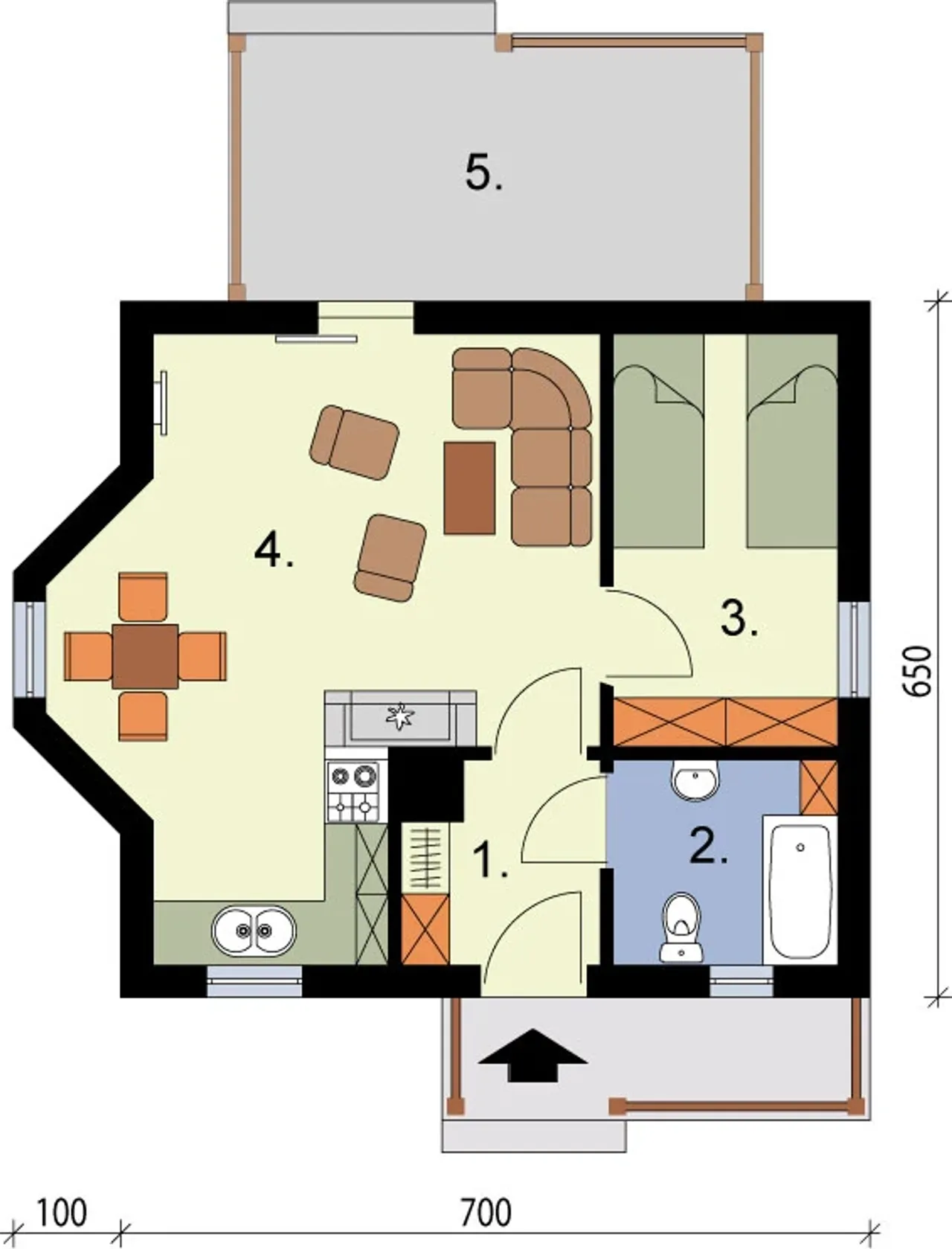 Wypełnij formularz i otrzymaj rysunki w pdf z dokładnymi wymiarami budynku i pomieszczeń (długość, szerokość, wysokość) dla projektu LIMONE 2 dom letniskowy