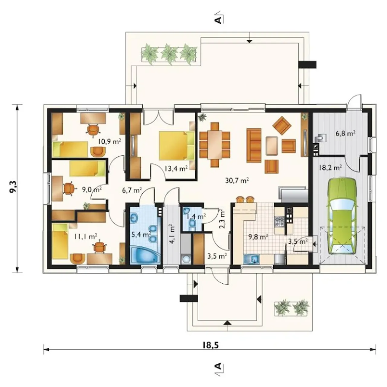 - elewacje - pokazują dokładny wygląd domu od frontu, z tyłu i z boków