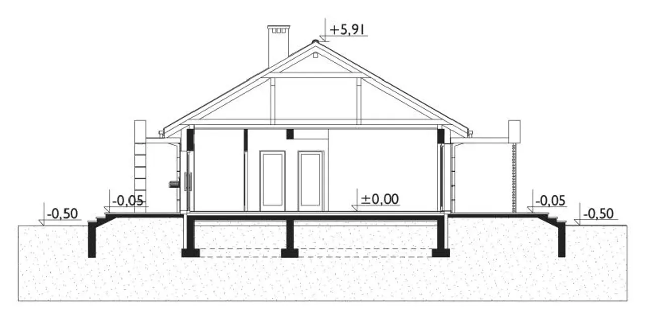 - rzut dachu - ukazuje jego kształt, wymiary, kąt nachylenia połaci, rozmieszczenie okien połaciowych, lukarn, świetlików i rur spustowych, pokazuje rozmieszczenie kominów i informuje o sposobie odwodnienia: rozmieszczeniu i rozmiarach rynien