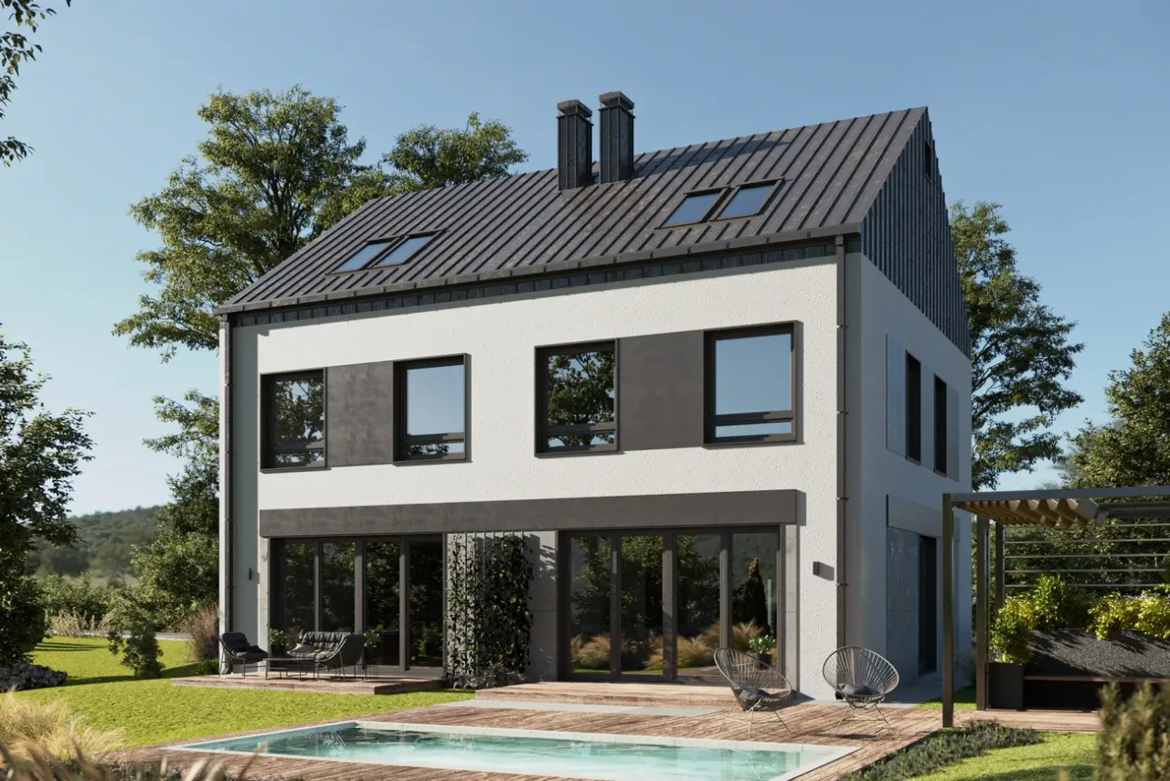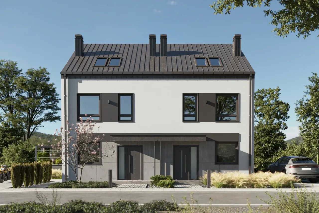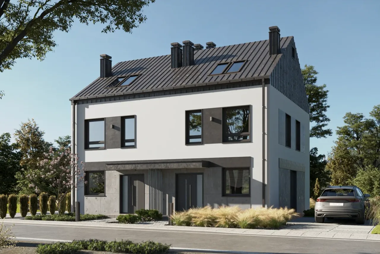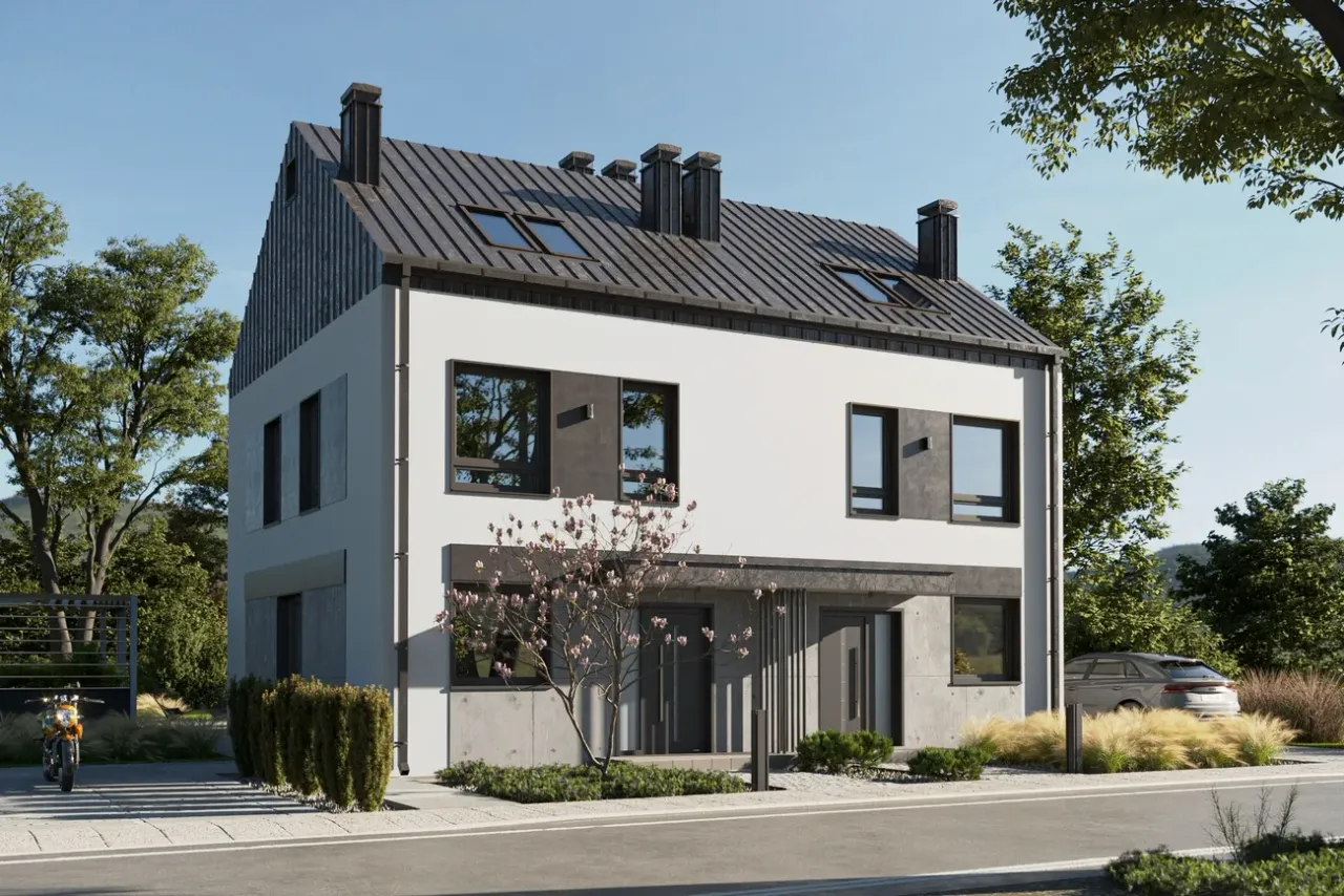 - elewacje - pokazują dokładny wygląd domu od frontu, z tyłu i z boków