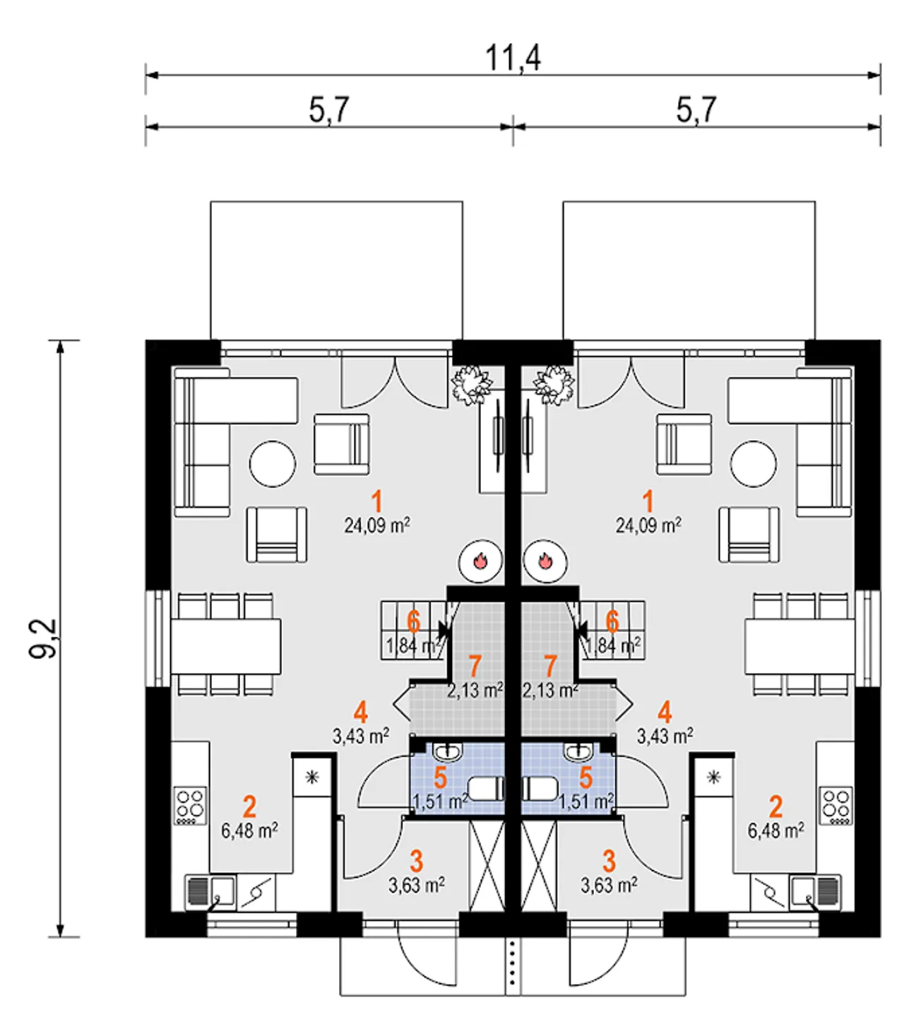 - rzuty wszystkich kondygnacji- pokazuje rozmieszczenie poszczególnych pomieszczeń i ich wymiary, powierzchnie, rozmieszczenie ścian, rozmieszczenie otworów drzwiowych, okiennych, urządzeń kuchennych i sanitarnych
