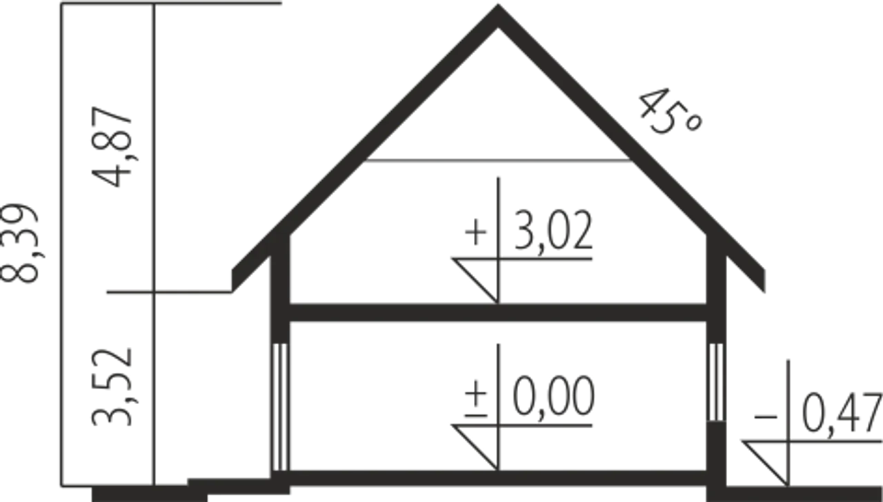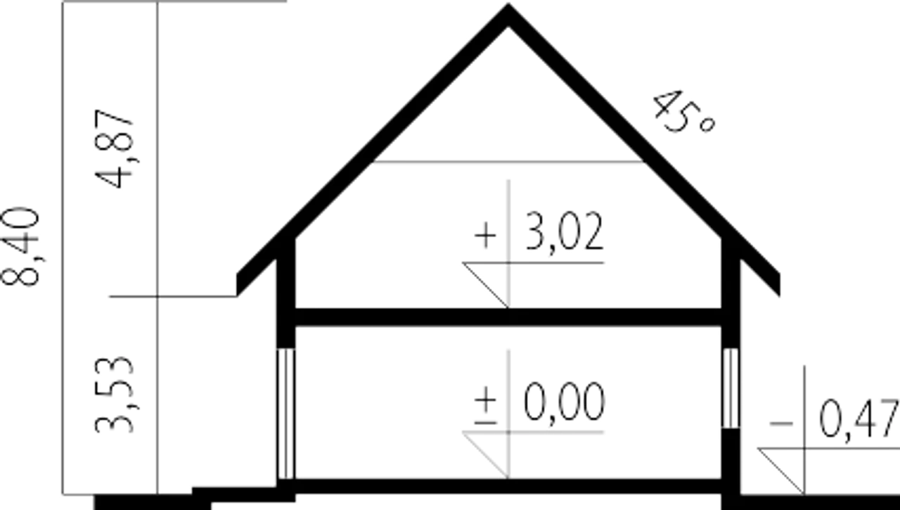 Kąt nachylenia dachu 45 ° |