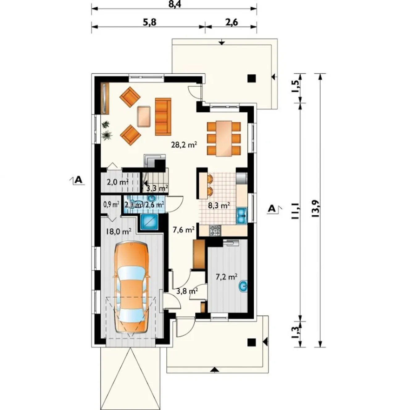 Szerokość budynku 8.4 m |