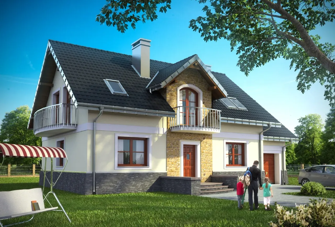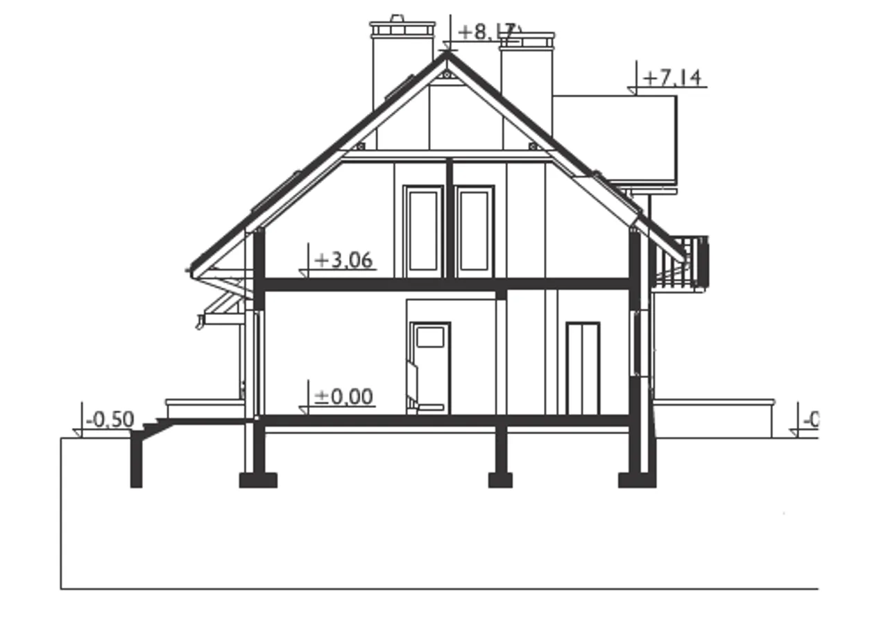 - elewacje - pokazują dokładny wygląd domu od frontu, z tyłu i z boków