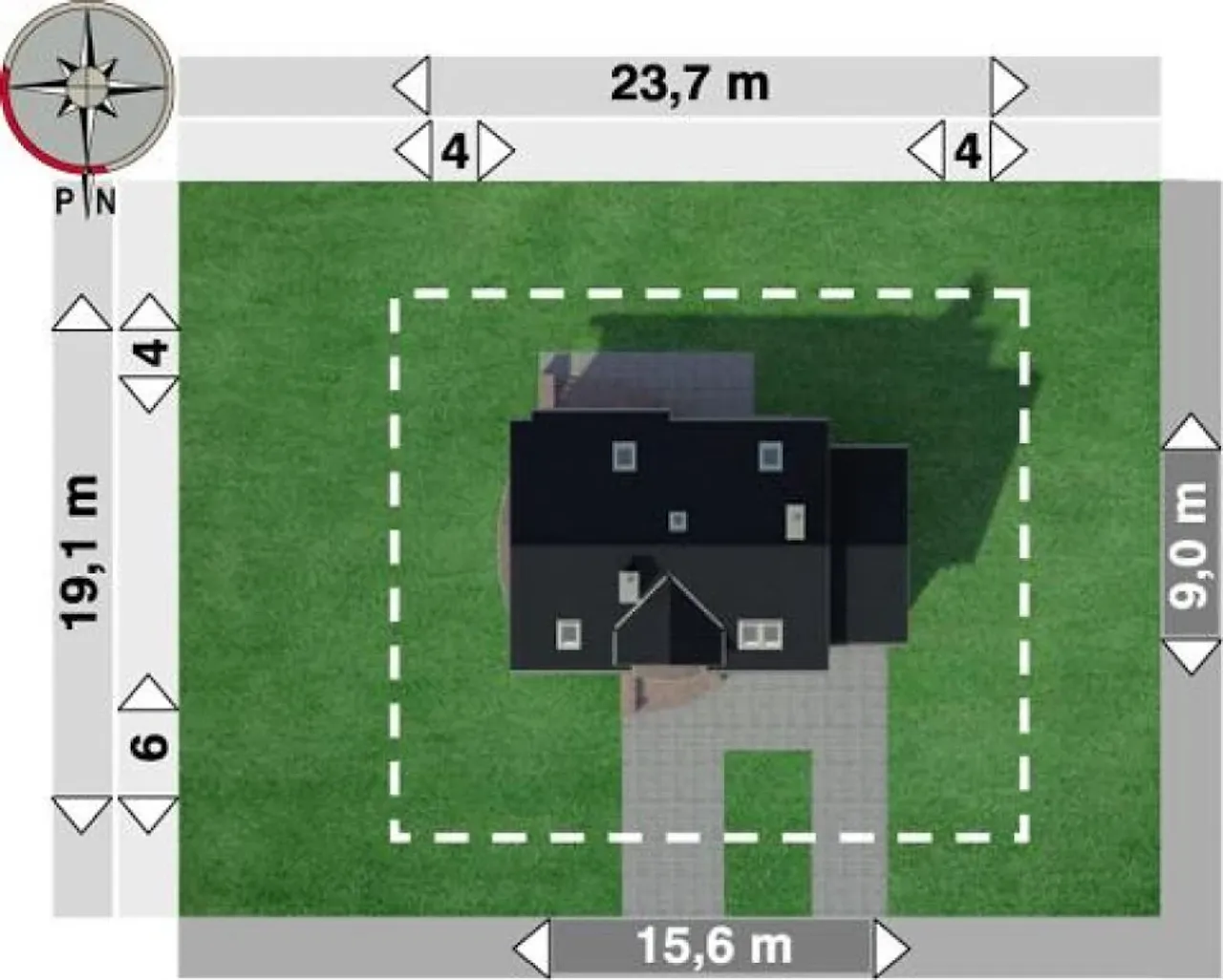 Wypełnij formularz i otrzymaj rysunki w pdf z dokładnymi wymiarami budynku i pomieszczeń (długość, szerokość, wysokość) dla projektu Loreta Polo