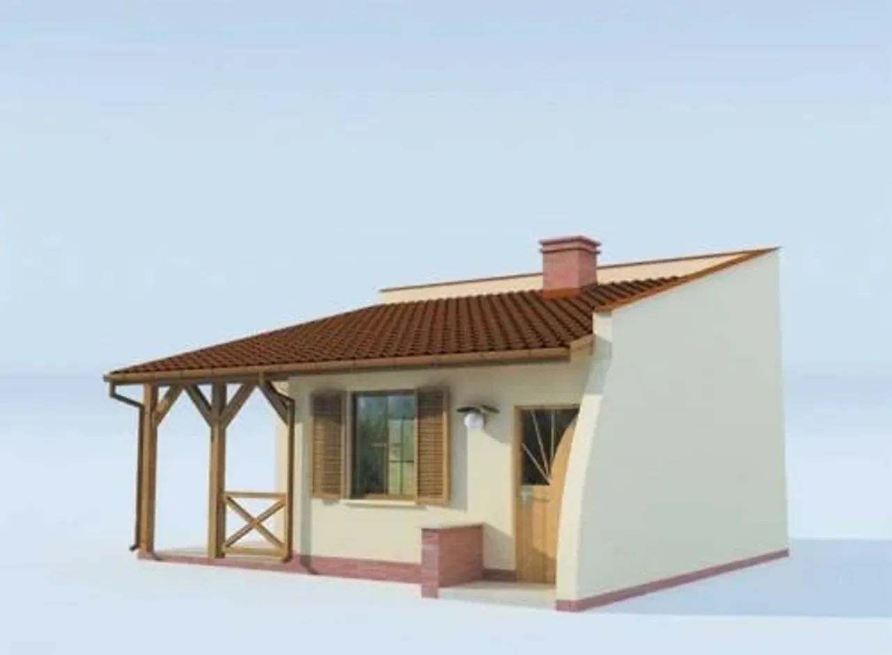 Projekt domu LUBLANA to niewielki parterowy dom letniskowy pokryty dachem jednospadowym o kącie 15 stopni. Dom ma indywidualny wygląd dzięki ścianie bocznej i tylnej która wyróżnia ten budynek na tle innych. Projekt domu LUBLANA gdzie przewidziano dwa pokoje, pokój dzienny, kuchnie i łazienkę. Budynek to idealne rozwiązanie dla osób szukających taniego domu letniskowego o niedużych gabarytach.