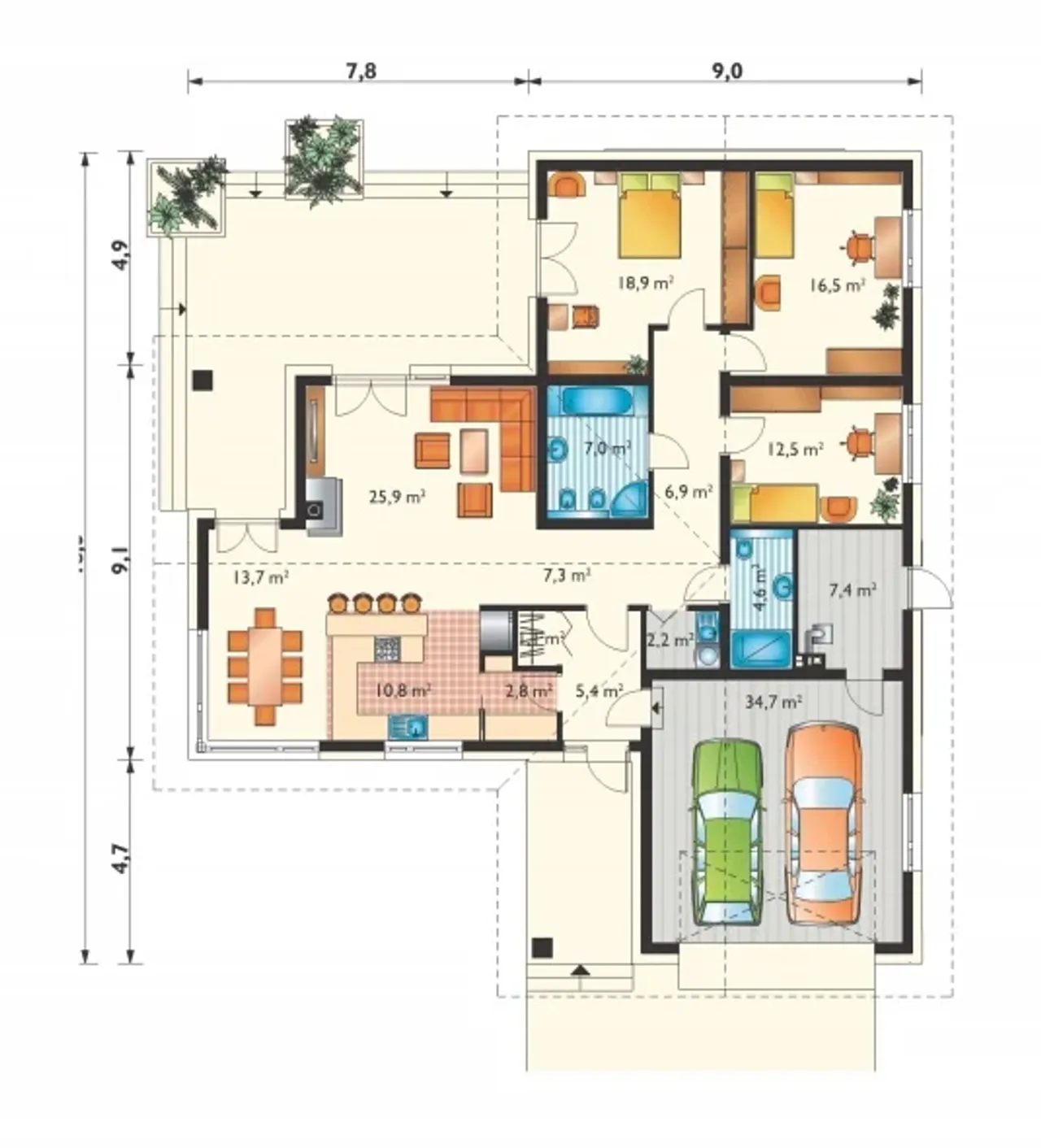- elewacje - pokazują dokładny wygląd domu od frontu, z tyłu i z boków