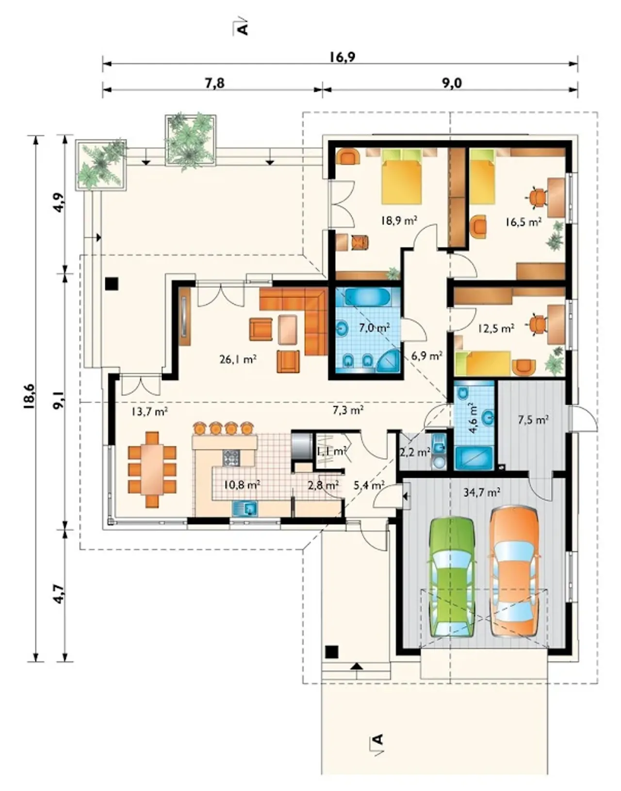 - elewacje - pokazują dokładny wygląd domu od frontu, z tyłu i z boków