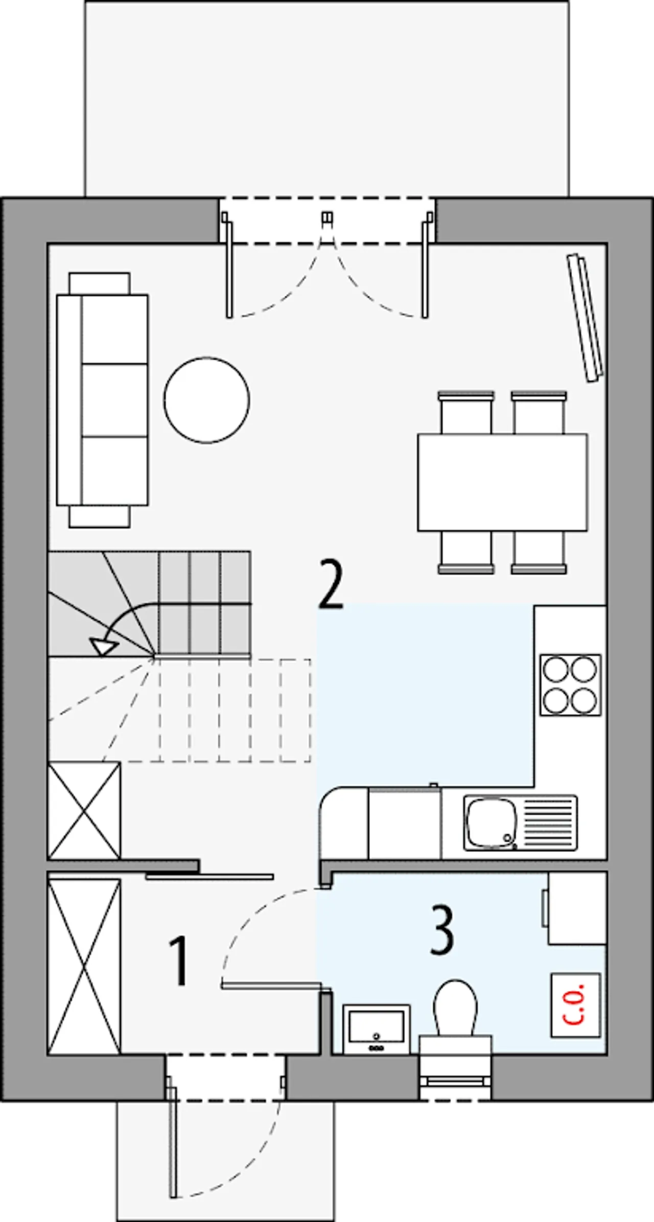 Wypełnij formularz i otrzymaj rysunki w pdf z dokładnymi wymiarami budynku i pomieszczeń (długość, szerokość, wysokość) dla projektu Luna 1A