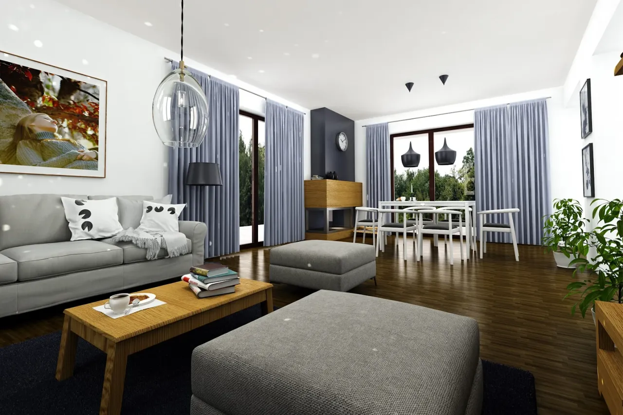 Wypełnij formularz i otrzymaj rysunki w pdf z dokładnymi wymiarami budynku i pomieszczeń (długość, szerokość, wysokość) dla projektu Luna bez garażu B