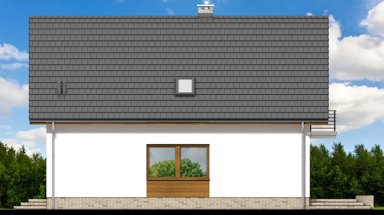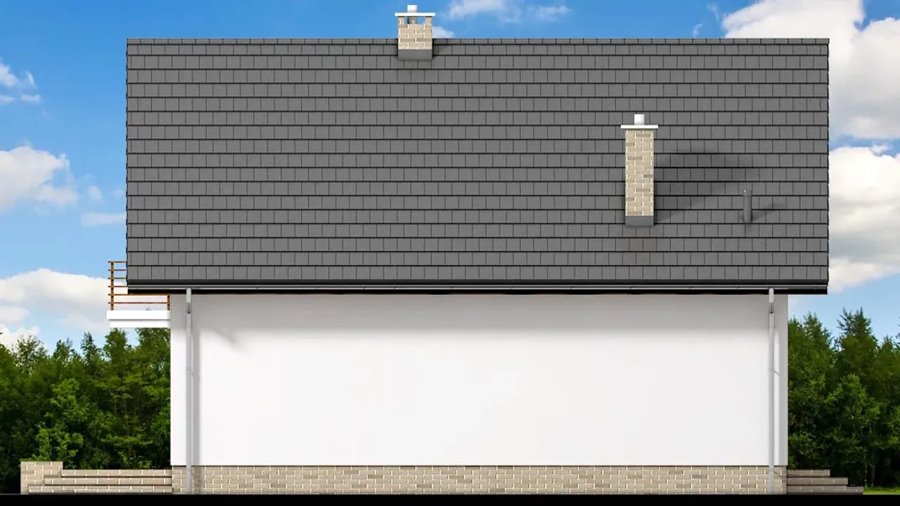 Dwuspadowy, drewniany dach oraz strop monolityczny podkreślają uniwersalny charakter domu. Dach możesz pokryć dachówką betonową lub ceramiczną, podnosząc estetykę i trwałość konstrukcji. Prostopadłe ustawienie kalenicy do drogi ułatwia dopasowanie projektu do wielu działek. Ogrzewanie gazowe z opcją wykorzystania paliwa stałego daje swobodę wyboru najbardziej opłacalnego źródła ciepła.