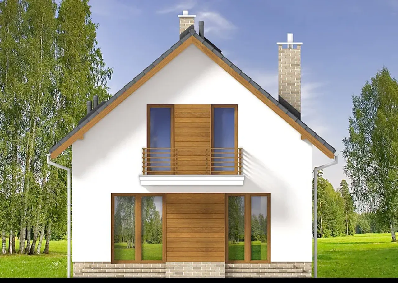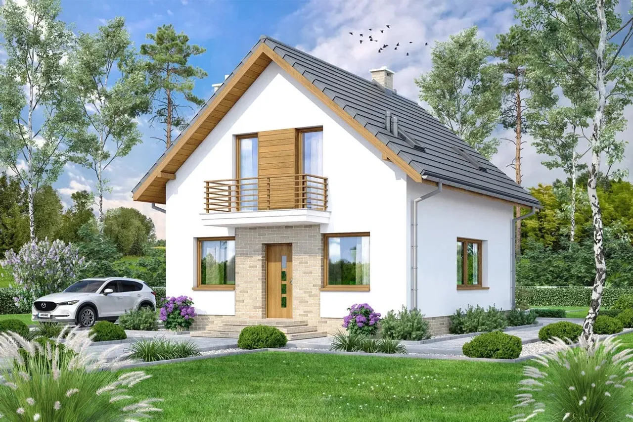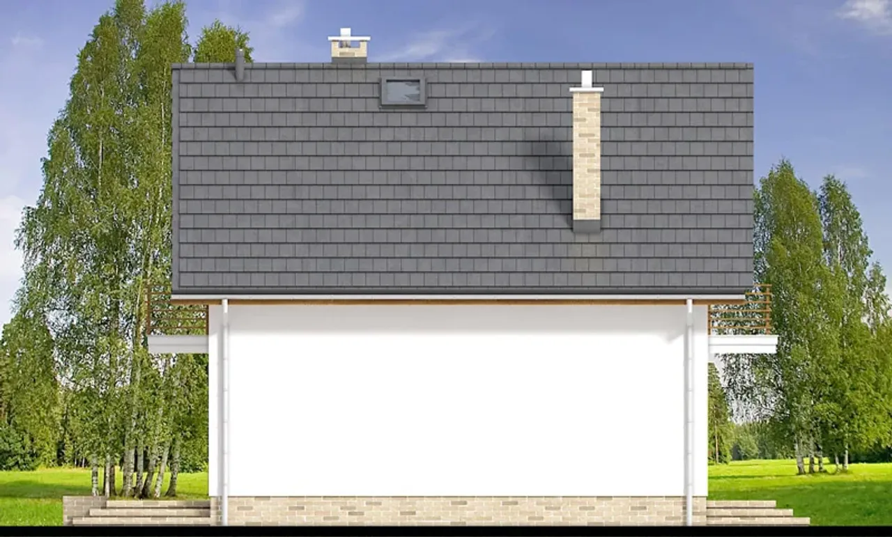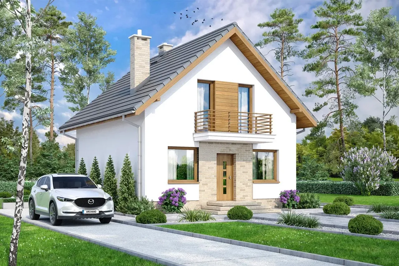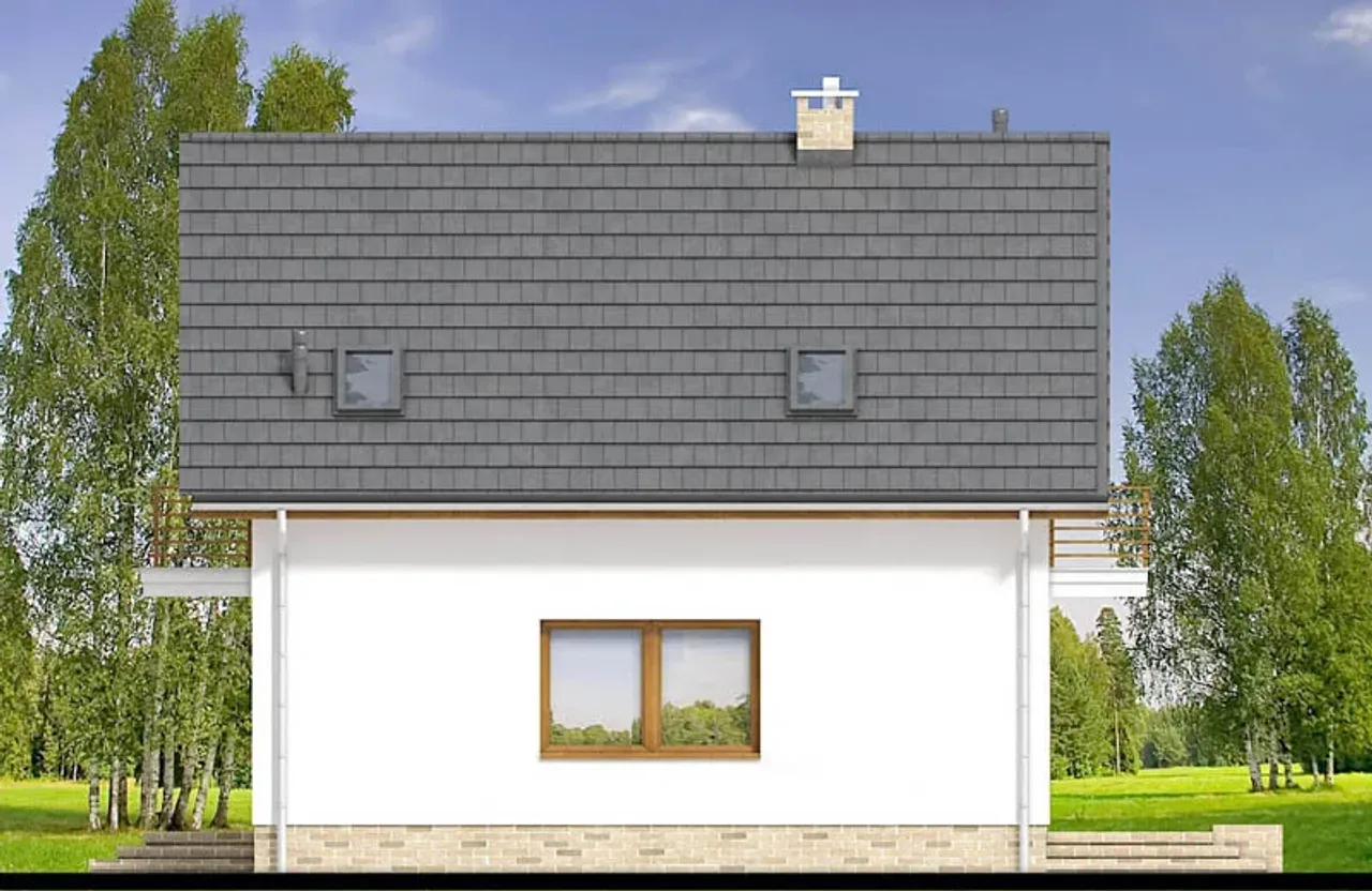Projekt nie przewiduje garażu, co sprawia, że dom doskonale sprawdzi się zarówno na węższych działkach, jak i w środowisku podmiejskim czy wiejskim. Otwarta przestrzeń parteru z kominkiem oraz bezpośrednim wyjściem na taras staje się centrum życia rodzinnego oraz miejscem odpoczynku niezależnie od pory roku. Poddasze z przemyślanym rozkładem pokoi pozwala spełnić potrzeby nawet większej rodziny.