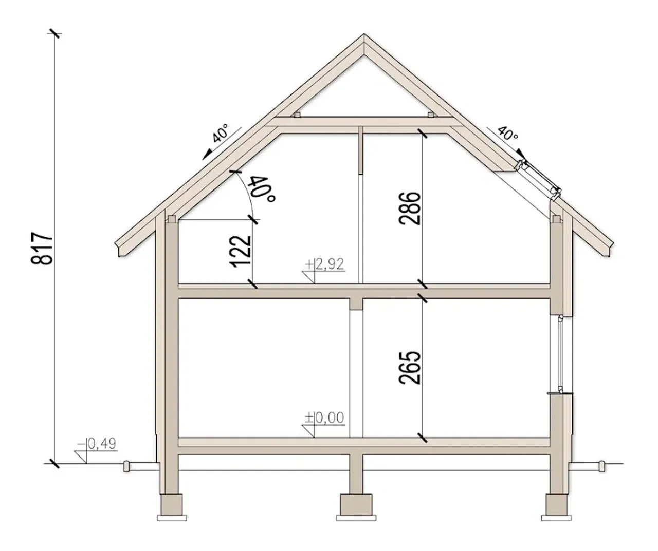Dom Lungo 4 mini to murowany budynek oparty na żelbetowych fundamentach. Ściany wznoszone z pustaków ceramicznych oraz monolityczny strop gwarantują wytrzymałość oraz stabilność konstrukcji. Dwuspadowy dach o kącie nachylenia 40° wykonany na drewnianej więźbie, pokryty efektywną dachówką betonową lub ceramiczną, podkreśla nowoczesny charakter.