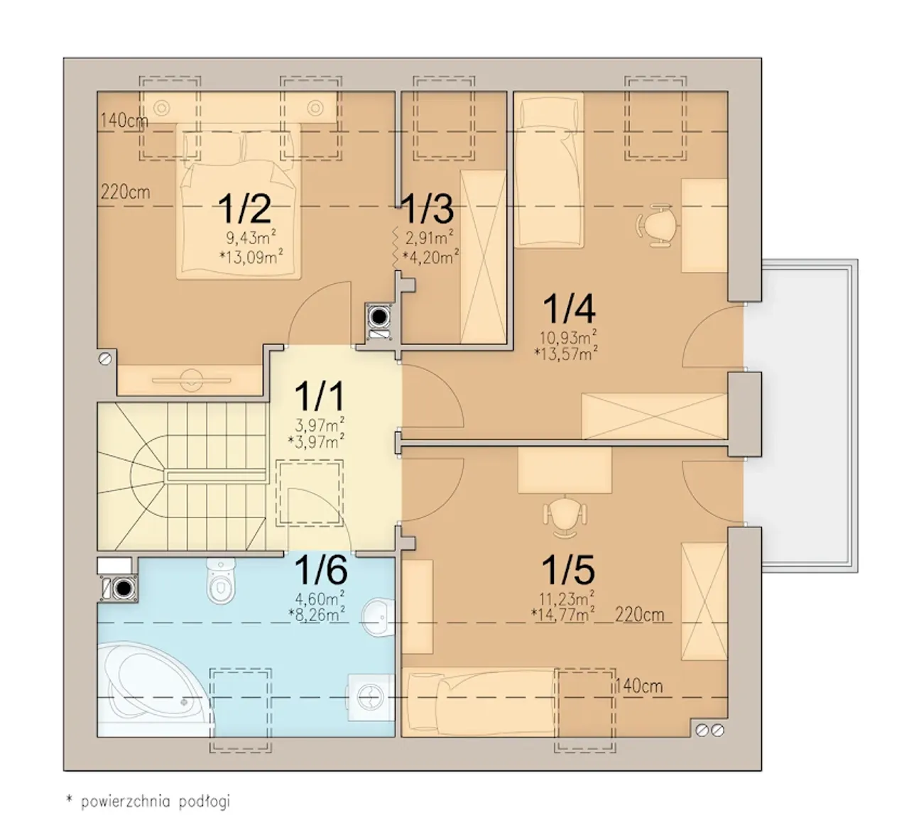Powierzchnia dachu 143 m² |