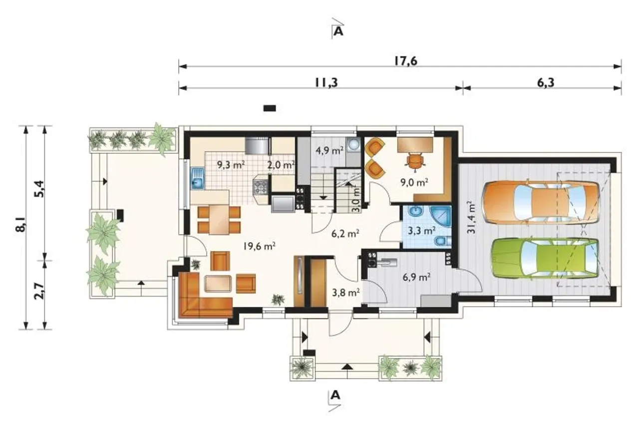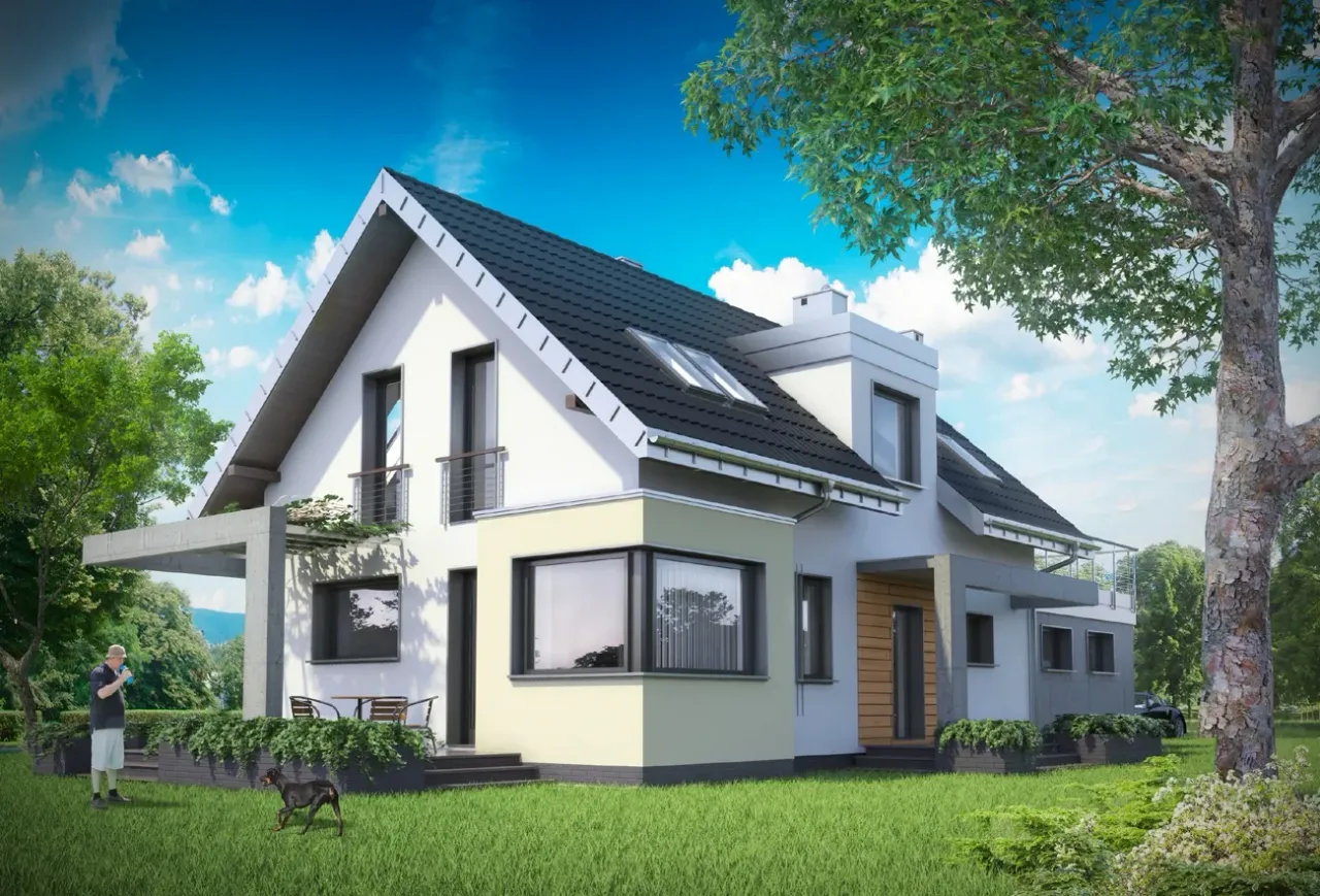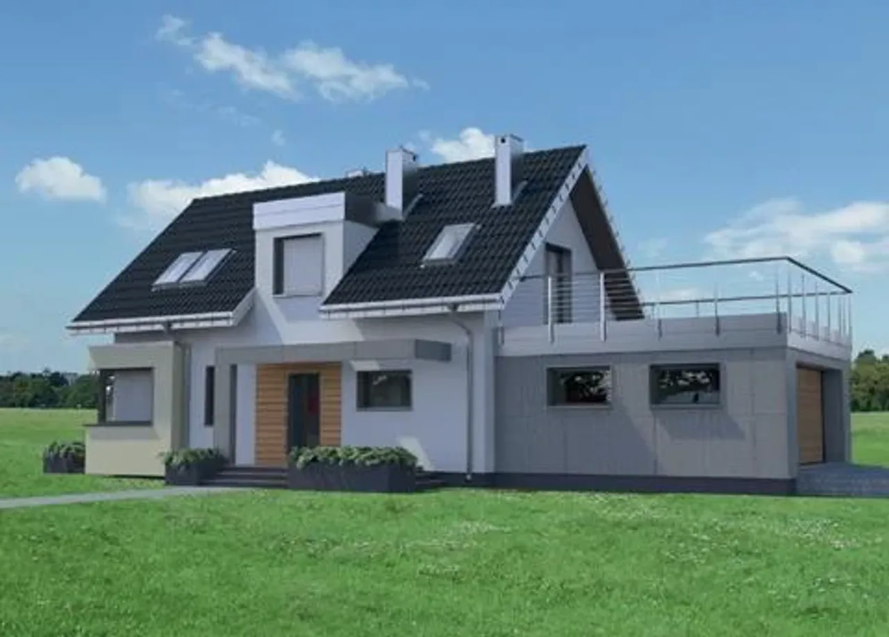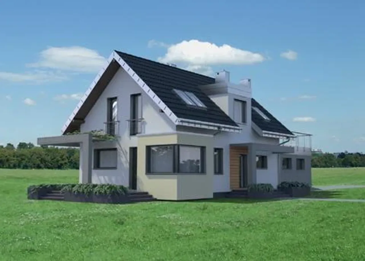 - elewacje - pokazują dokładny wygląd domu od frontu, z tyłu i z boków