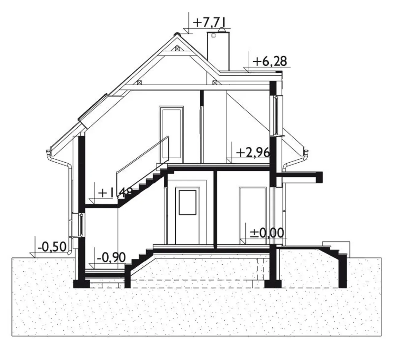 - przekroje - pokazują wszystkie elementy budynku po przecięciu go wzdłuż lub w poprzek od dachu do fundamentów tj. warstwy podłogi, stropów i dachu