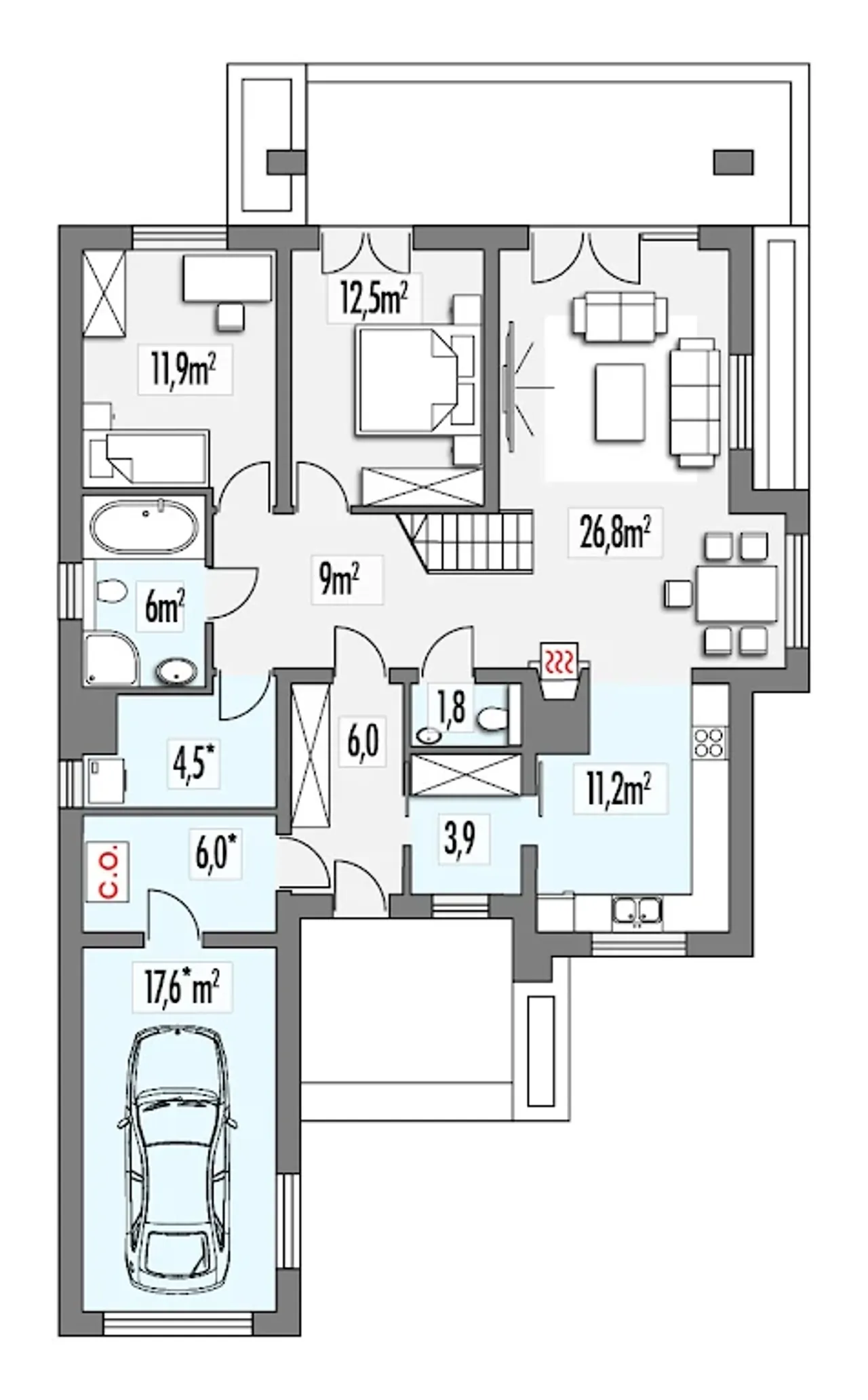 Wypełnij formularz i otrzymaj rysunki w pdf z dokładnymi wymiarami budynku i pomieszczeń (długość, szerokość, wysokość) dla projektu Małgosia 2 B pojedynczy garaż