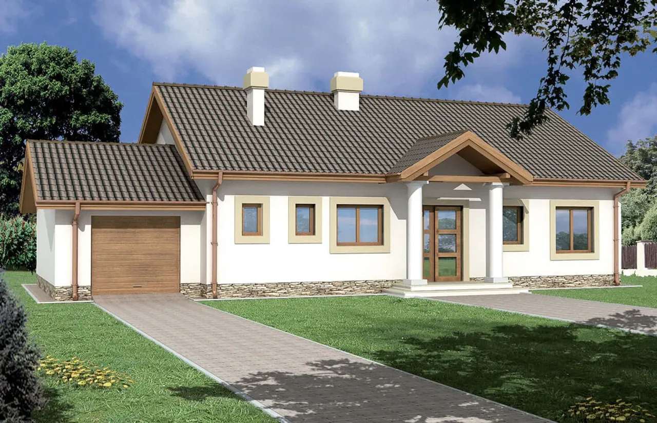 Kupując projekt w technologii murowanej powinieneś budować dom murowany. Zupełna zmiana technologii na szkieletową wymaga przeprojektowania całego budynku ( zmieniają się obciążenia, fundamenty, konstrukcja dachu). Wydamy zgodę na takie przeprojektowanie jednak wiążę się to z dużymi kosztami. Istnieją firmy wykonawcze, które podejmują się zmiany technologii budowy bezpłatnie przy skorzystaniu z ich usług wykonawczych. Zdarza się, że pracownia architektoniczna przygotowuje warianty konkretnego projektu przewidując także inne technologie. Prosimy o sprawdzenie czy istnieje poszukiwana wersja projektu, w zakładce - warianty projektu.