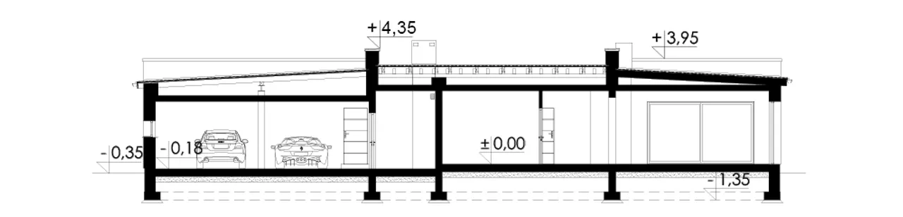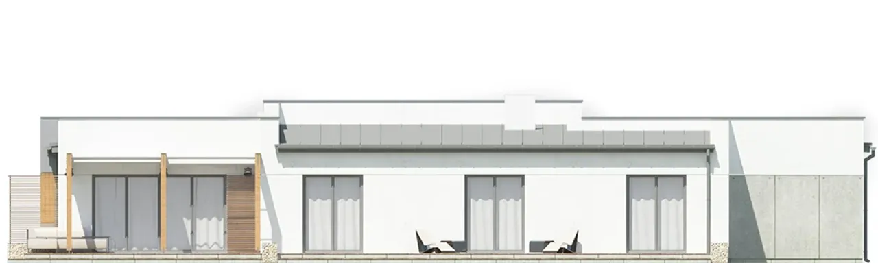 Dom Magneticus II G2 powstał z myślą o osobach ceniących nowoczesność i trwałość. Solidne ściany z pustaka ceramicznego o grubości 25 cm w połączeniu z 20-centymetrową warstwą styropianu Termo Organika gwarantują doskonałą izolację termiczną. Dzięki temu we wnętrzu panuje przyjemny klimat niezależnie od pory roku. Płaski dach o konstrukcji drewnianej, pokryty wytrzymałą papą termozgrzewalną, zwiększa odporność na zmienne warunki atmosferyczne i wpisuje się w nowoczesną architekturę.