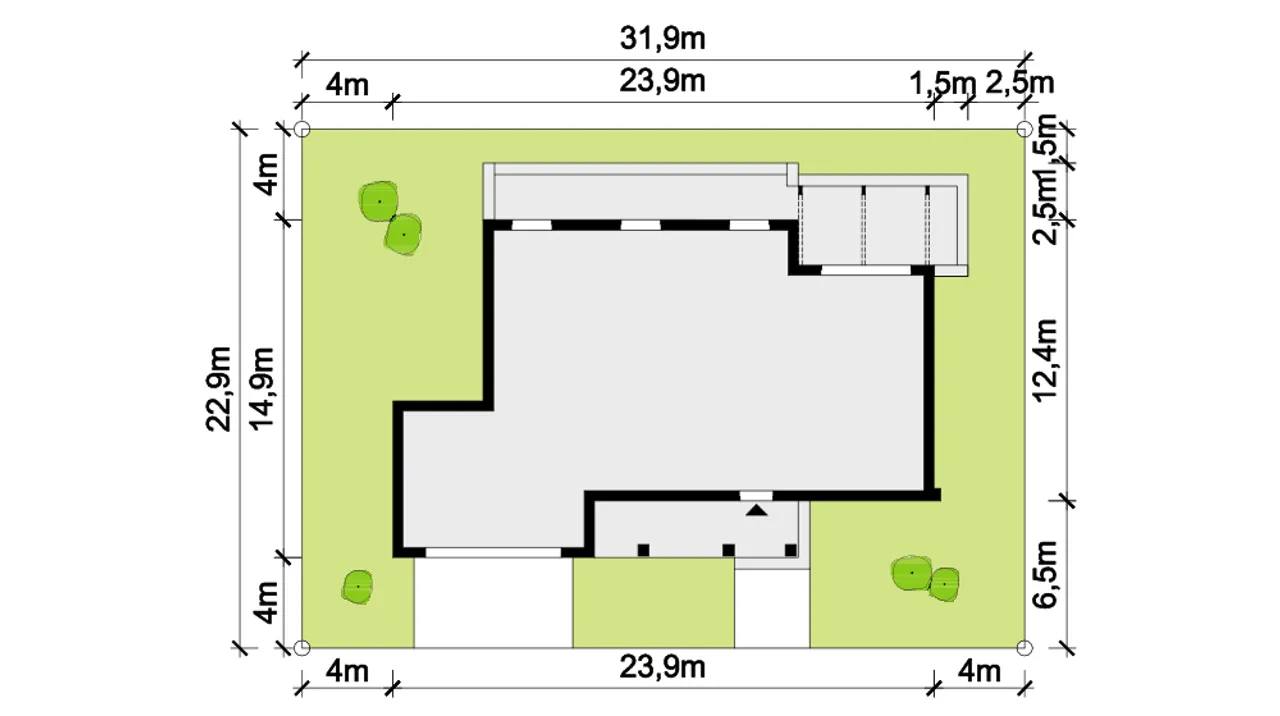 Szerokość budynku 23.9 m |