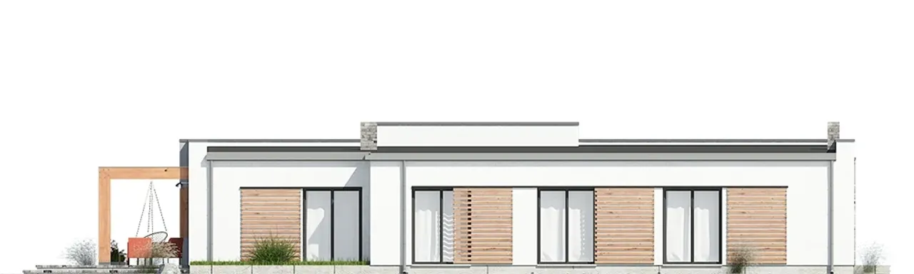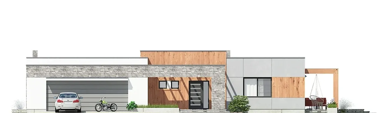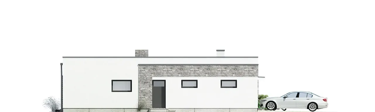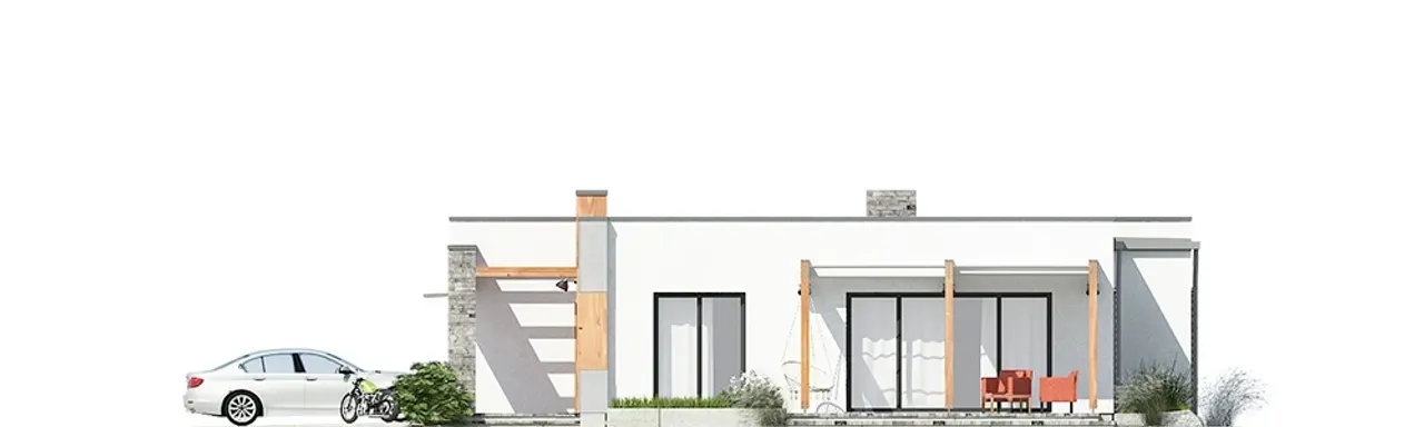 Wybierając ten projekt, inwestujesz w dom parterowy z trzema sypialniami oraz imponującym, dwustanowiskowym garażem zlokalizowanym frontowo. Magnetyzująca bryła, zacisze kominkowe oraz wydzielona pralnia czynią ten dom rozwiązaniem dla wymagających.
