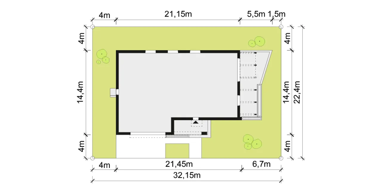Szerokość budynku 21.15 m |