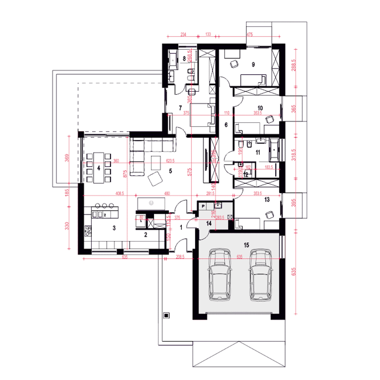 Wypełnij formularz i otrzymaj rysunki w pdf z dokładnymi wymiarami budynku i pomieszczeń (długość, szerokość, wysokość) dla projektu Magnetyt z garażem 2-st. A