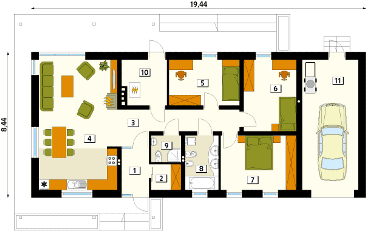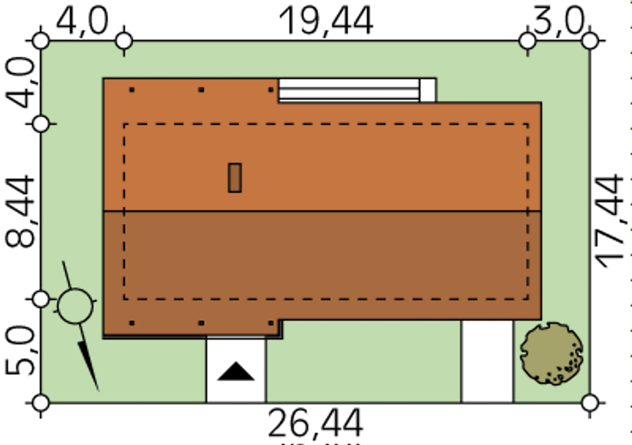 Wypełnij formularz i otrzymaj rysunki w pdf z dokładnymi wymiarami budynku i pomieszczeń (długość, szerokość, wysokość) dla projektu Mahoń 2